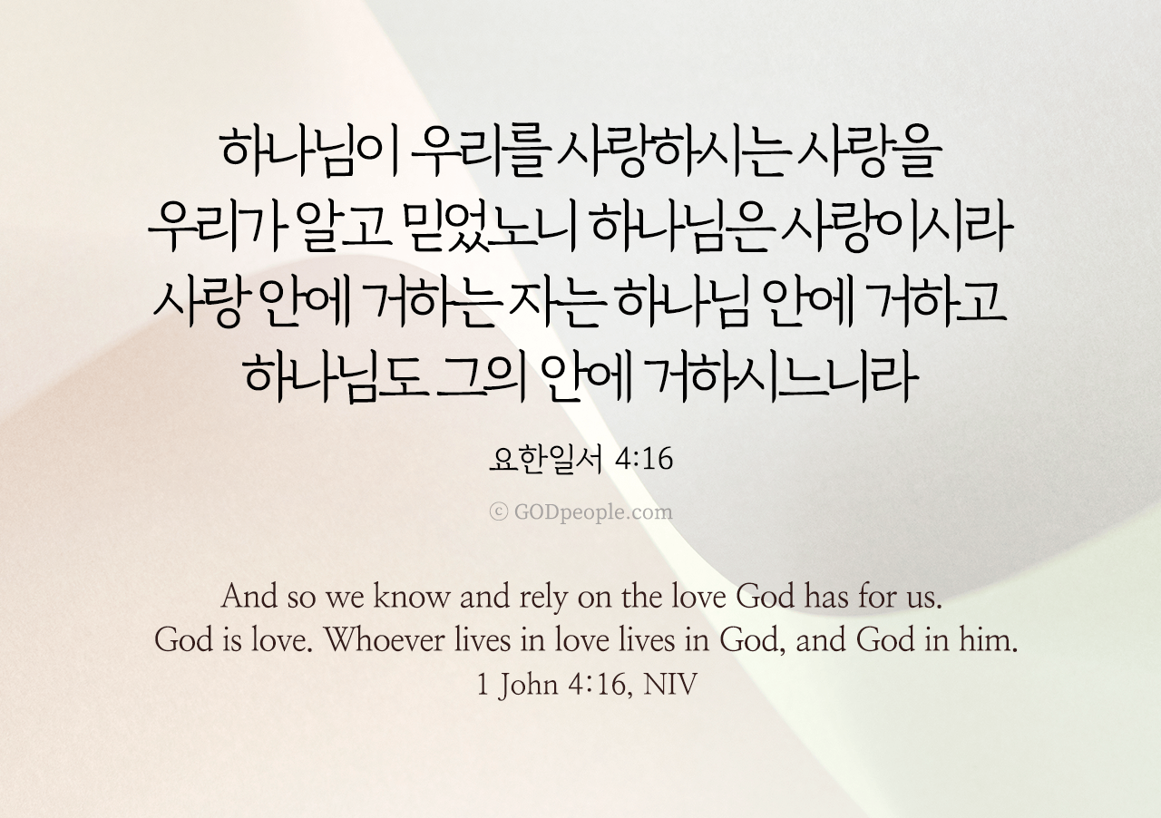 하나님이 우리를 사랑하시는 사랑을 우리가 알고 믿었노니 하나님은 사랑이시라 사랑 안에 거하는 자는 하나님 안에 거하고 하나님도 그의 안에 거하시느니라 _요한일서 4: 16 And so we know and rely on the love God has for us. God is love. Whoever lives in love lives in God, and God in them. _1 John 4: 16_NIV ♥ 교도소 재소자에게 성경책을 보내드립니다. [플로잉전용상품] 재소자에게 성경책 보내기_우리말성경 단본(실버그린)우리말성경 단본 (무색인/무지퍼/페이퍼백/실버그린/DKV2406)두란노 편집부 [플로잉전용상품] 재소자에게 성경책 보내기_큰글로 읽는 우리말 비전성경 중단본(호박색)큰글로 읽는 우리말 비전성경 중단본(색인/무지퍼/PU/호박색/DKV2206)도서출판 두란노두란노 편집부 위 성경책을 구매 (플로잉 Flowing) 하시면 "프리즌 리바이벌 PRISON REVIVAL "을 통해서 국내 교정기관의 담장 안에서 지내시는 분들에게 전달됩니다.♥ 수용자 자녀에게 성경만화, 묵상365를 보내드립니다. [플로잉전용상품] 수용자 자녀에게 성경만화 보내기_만화 예수님의 생애 세트 (전3권)온 가족이 함께 보는 사복음서김동순 [플로잉전용상품] 수용자 자녀에게 성경만화 보내기_[개역개정판] 카툰성경 세트(완간/전3권)그린이 : 키이스 닐리, 데이비드 마일즈 [플로잉전용상품] 갓피플 통해 쌀 보내기_백미 (10kg)오픈스토리 [플로잉전용상품] 맛있는 반찬보내기_김치세트 (유기농백김치+겉절이)참식품주식회사 위 상품 구매 (플로잉 Flowing) 하시면 "세움"을 통해서 수용자(교도소 재소자) 자녀들에게 전달됩니다.+오늘의말씀으로 만들었어요♡ 오늘의말씀 아크릴 자석액자+말씀을 듣고 필사하세요♡ 개역개정 MP3 다운로드 | 태블릿으로 필사 | 종이노트로 필사 좋아요아멘개척교회 돕기 2023-02-23 · 4521 · 112 · 오늘의말씀 말씀카드 요한일서4장16절 요일4:16 전도[주의] 계좌로 도움 요청글 발견시눌러 사용자차단을 눌러주세요!댓글 0입력댓글먼저최근순등록오늘의말씀더보기갓피플 오늘의말씀_여호수아1장9절갓피플 오늘의말씀_신명기31장8절갓피플 오늘의말씀_예레미야33장3절