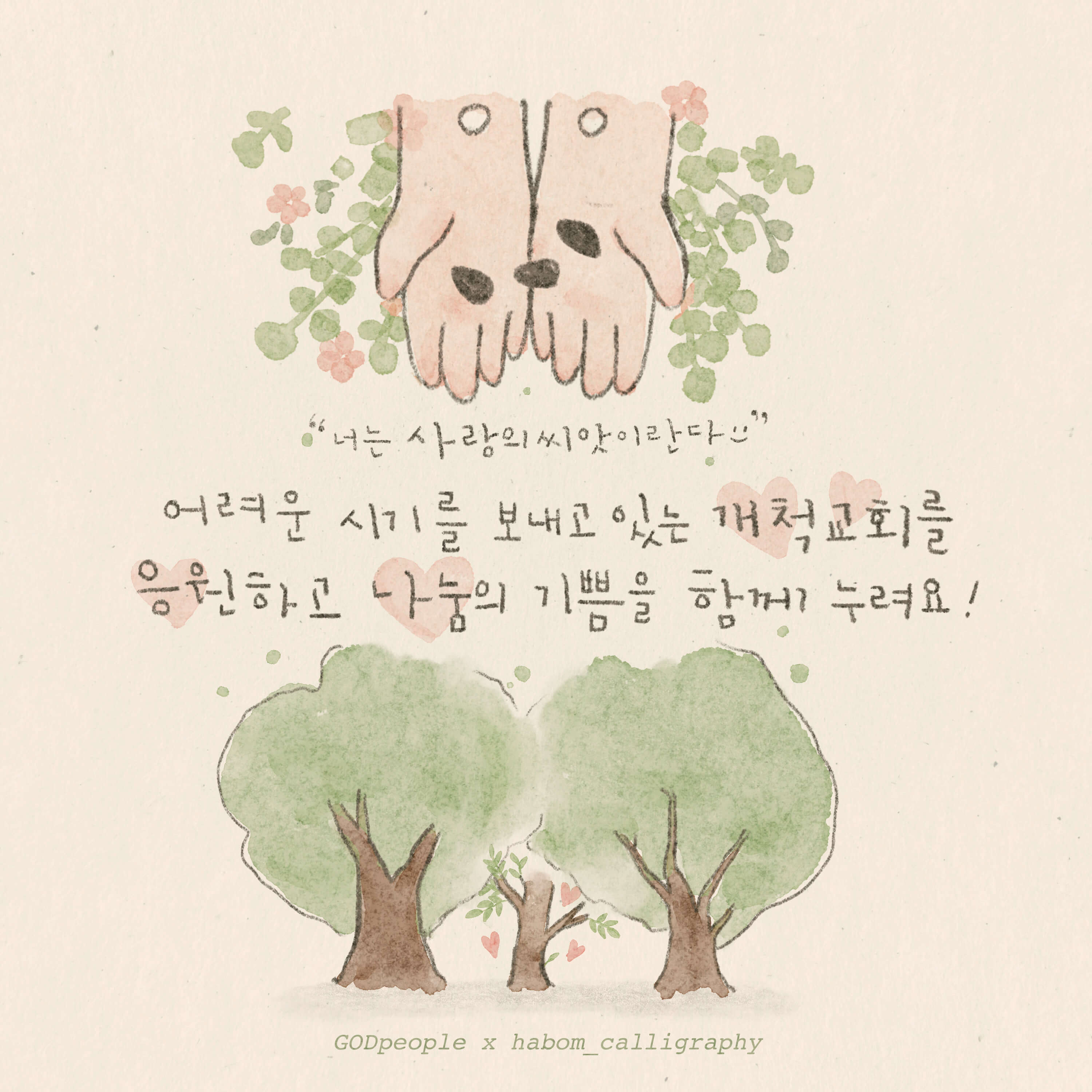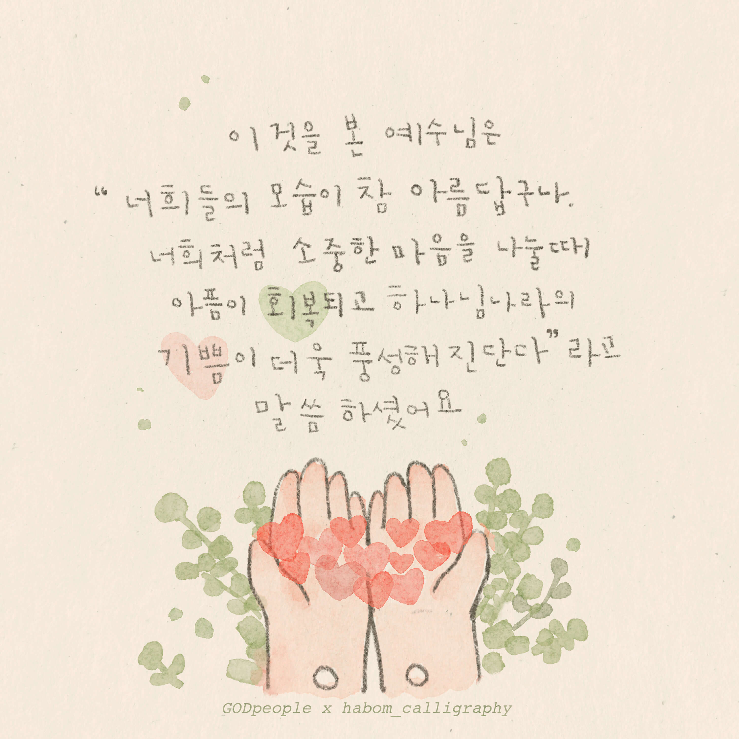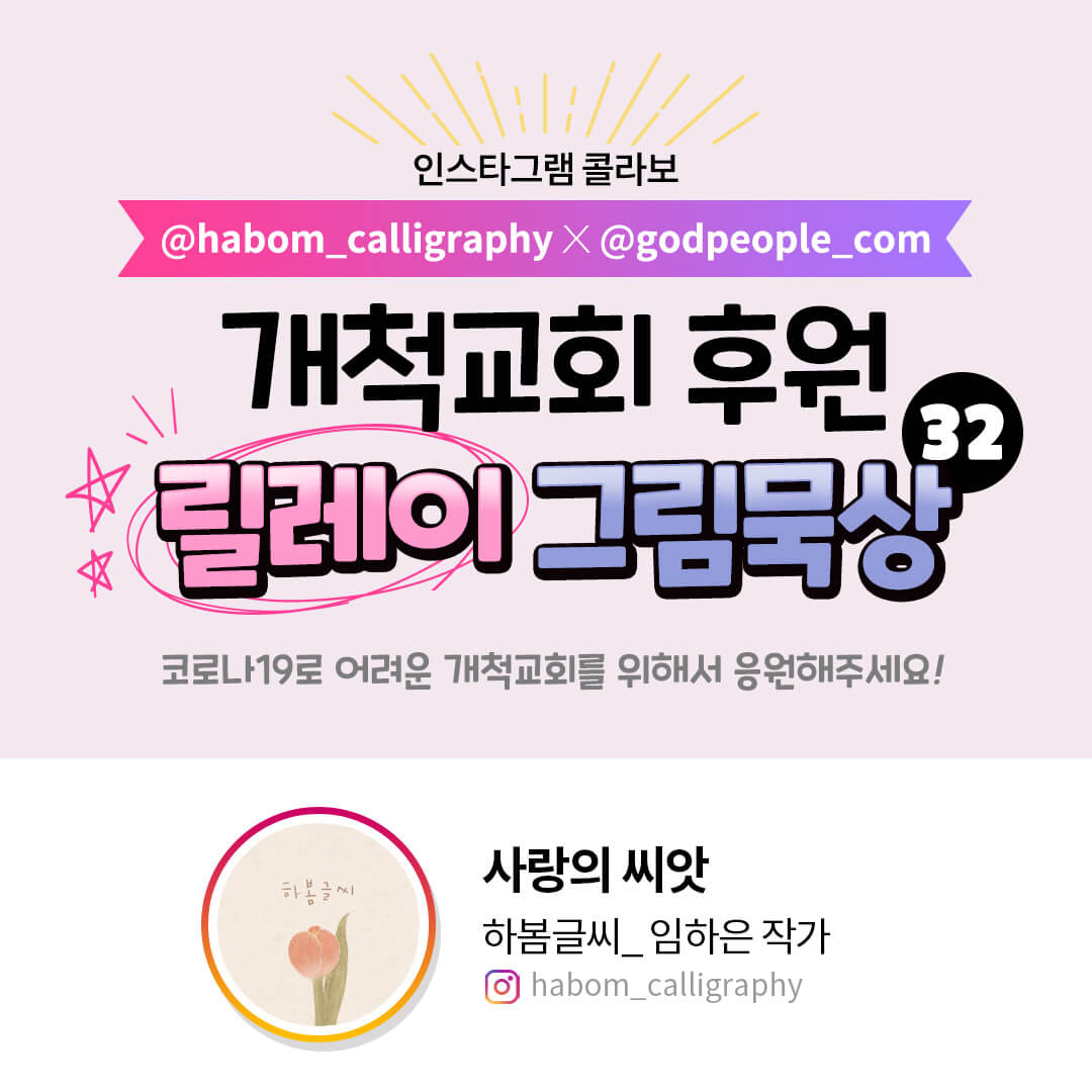 본 작품은 하봄글씨 @habom_calligraphy 임하은작가님 께서 재능기부로 섬겨주셨습니다. 감사합니다.