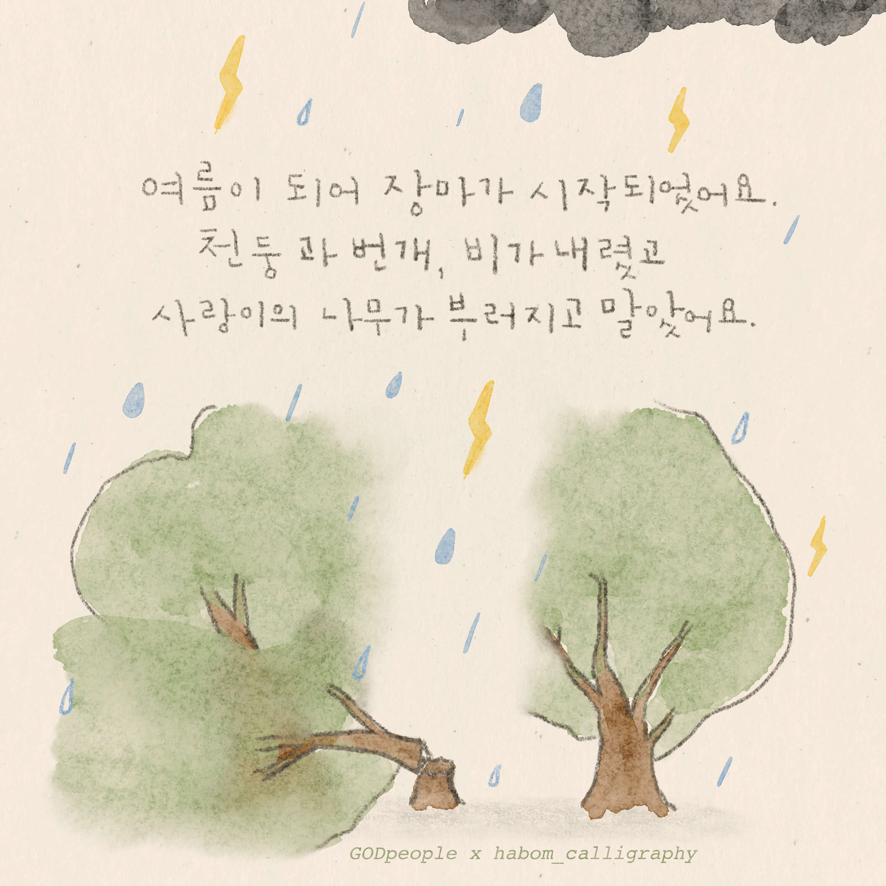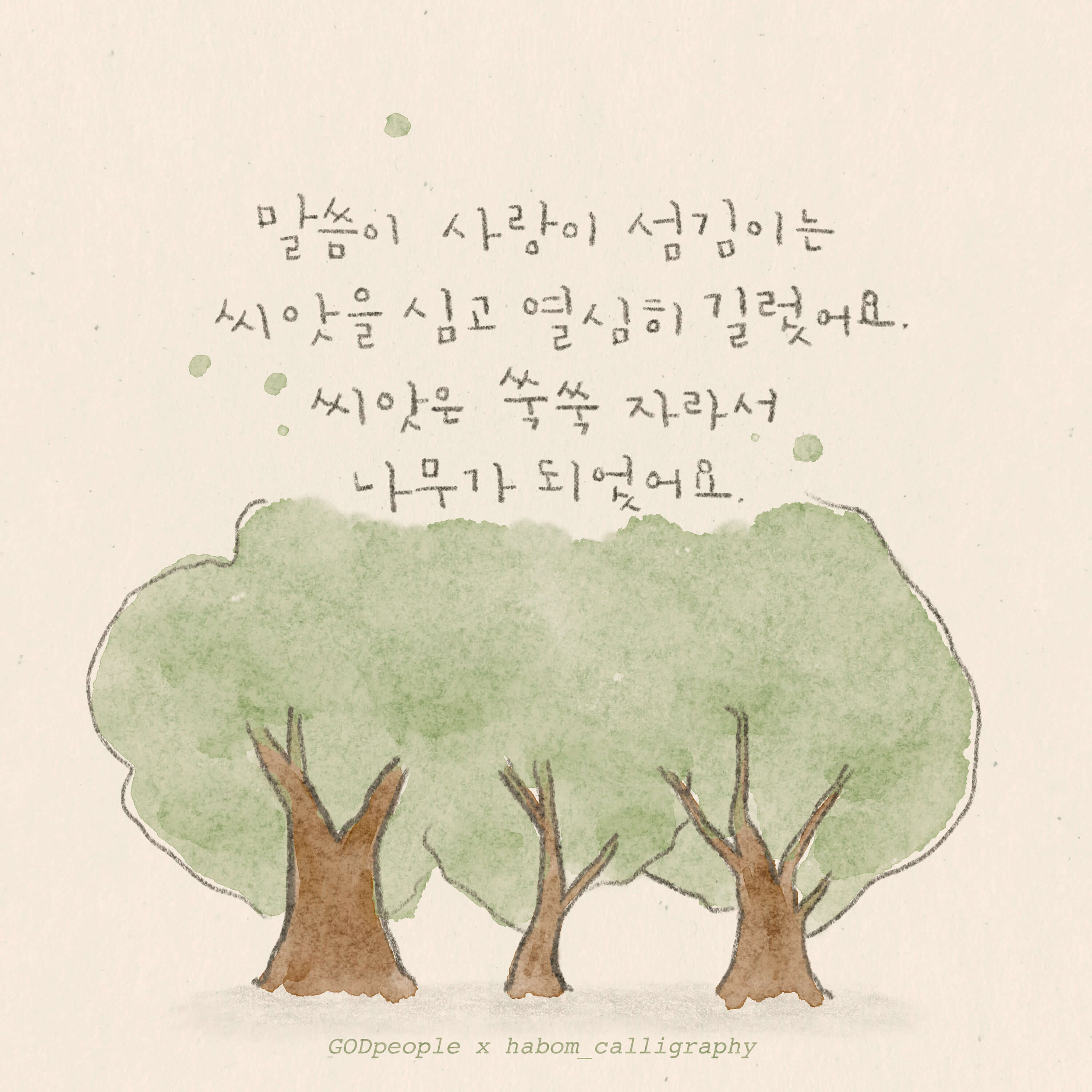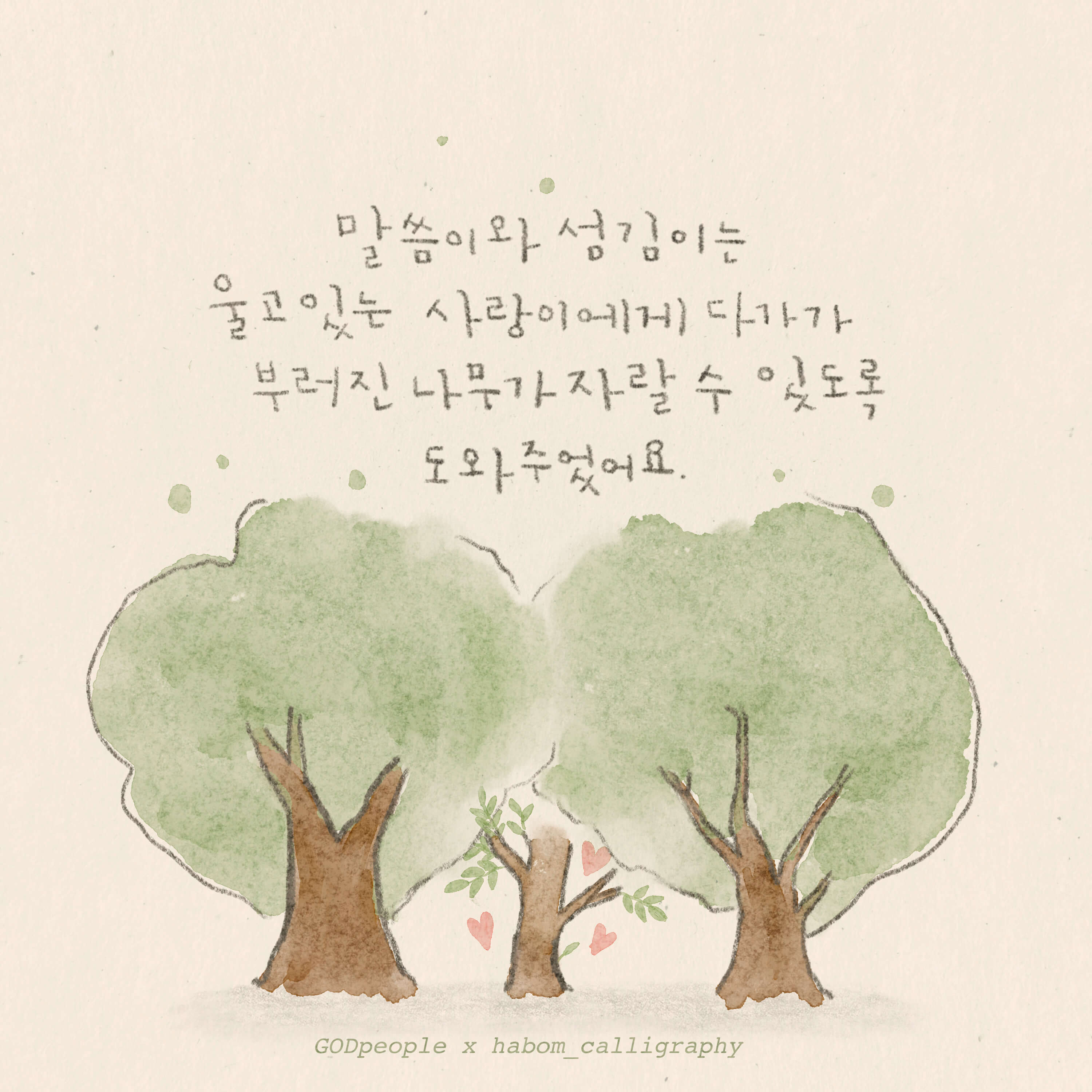 본 작품은 하봄글씨 @habom_calligraphy 임하은작가님 께서 재능기부로 섬겨주셨습니다. 감사합니다.