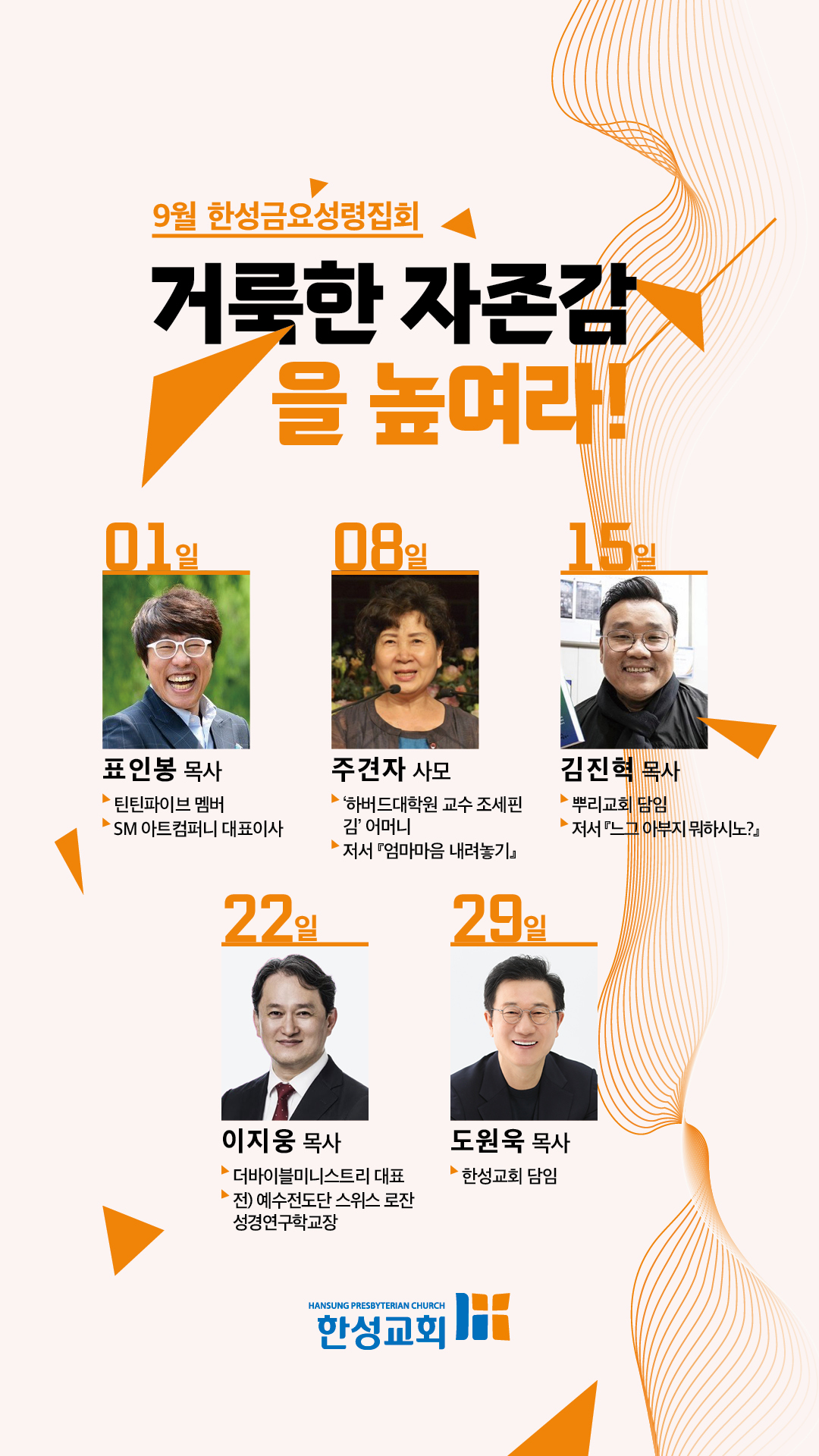 9월 한성금요성령집회는 하나님 앞에서 거룩한 자존감을 회복하여 후반기 사역을 힘차게 시작하는 디딤돌이 될 것입니다.