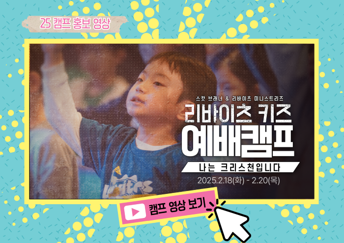 2025 리바이츠 키즈 예배캠프 축복합니다!나는 크리스천입니다"를 주제로 열리는 2025 리바이츠 키즈 예배캠프를 통해 다음 세대가 하나님 앞에 구별된 크리스천으로 세워지는 시간이 되기를 소망합니다. 2025 리바이츠 키즈 예배캠프는 신청서 작성 및 입금 후 등록이 완료되며, 등록선착순 300명으로 마감됩니다.정원이 정해진 워십클래스는 등록순으로 마감됩니다.좋아요아멘개척교회 돕기 2024-12-18 · 2852 · 37 · 18[주의] 계좌로 도움 요청글 발견시눌러 사용자차단을 눌러주세요!댓글 0입력댓글먼저최근순등록기독자료더보기303비전성경암송학교 유니게 1단계 29기 패밀리 11.27(목), 4단계 2기 11.25(화)[323차 개척교회 사역지원금] 어려운 개척교회와 목회자, 신학생을 위해서 기도와 응원을 해주세요![무료줌강의 선착순100명] 20년간 6천여명 데이트코칭 갓데이트 문형욱박사의《커플코칭 전문가 자격증 무료 줌세미나》