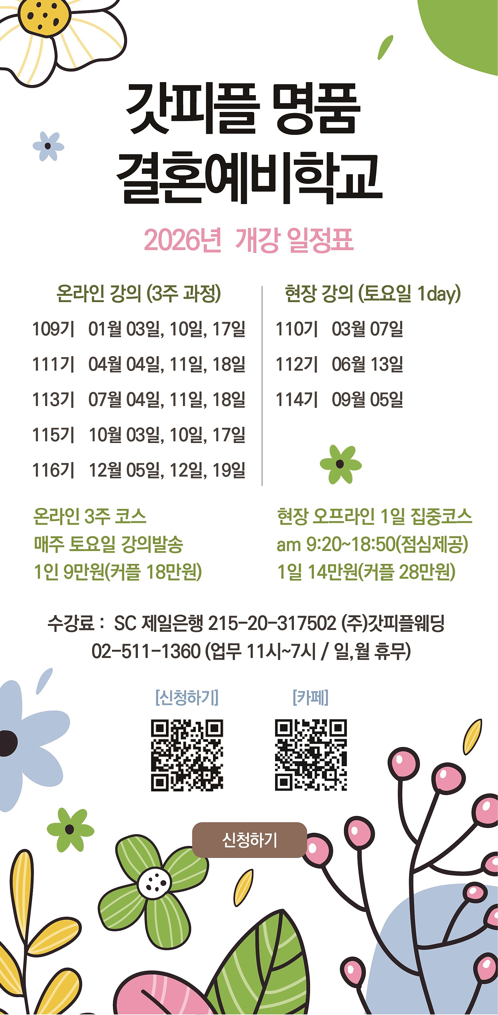 ◈ Married Couple 부부 AS 강의 일정(토요일 개강 2주차 강의)2026년도11기 02월 07일, 14일