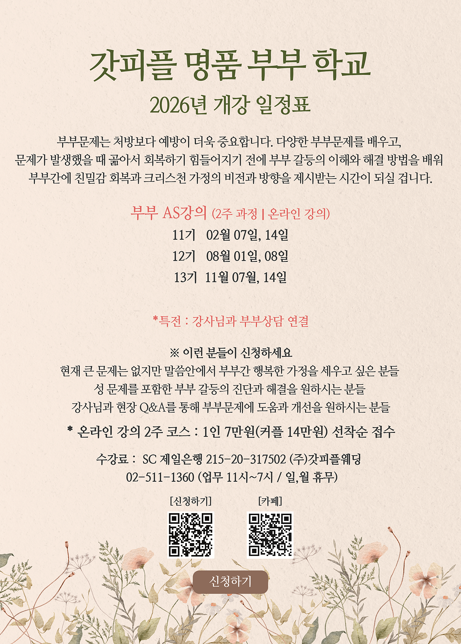 **부부 학교 강의는 실시간으로 신청 후 오픈해드립니다.
