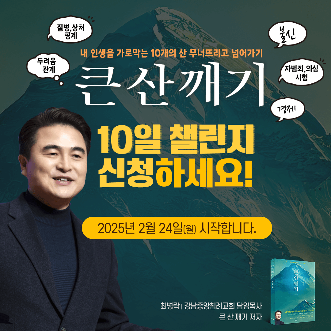 신앙이란 문제를 피해 다니는 게 아니라, 성령님의 도우심을 힘입어 이겨내며 나아가는 것입니다. 큰 산 앞에서 주저앉아 좌절하기보다는, 그 산을 딛고 한 걸음 더 나아가는 믿음을 갖길 원하는 분들께 강남중앙침례교회 최병락 목사와 함께한 롬팔이팔 인터뷰를 진심으로 권해드립니다.