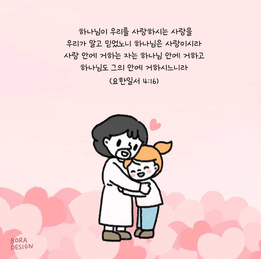 하나님이 우리를 사랑하시는 사랑을 우리가 알고 믿었노니 하나님은 사랑이시라 사랑 안에 거하는 자는 하나님 안에 거하고 하나님도 그의 안에 거하시느니라 - 요일 4:16