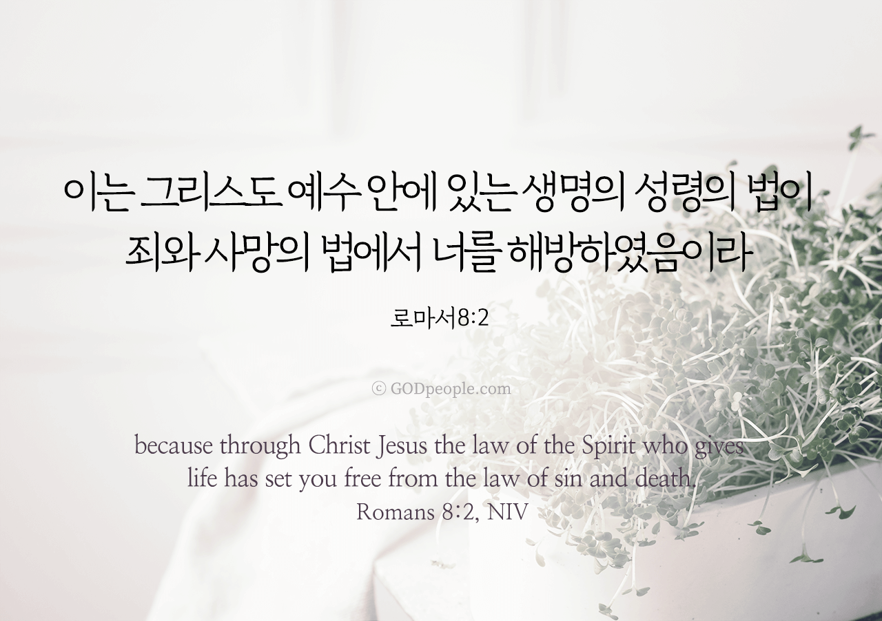 이는 그리스도 예수 안에 있는 생명의 성령의 법이 죄와 사망의 법에서 너를 해방하였음이라 _로마서 8:2because through Christ Jesus the law of the Spirit who gives life has set you free from the law of sin and death. _Romans 8:2, NIV ♥ 교도소 재소자에게 성경책을 보내드립니다. [플로잉전용상품] 재소자에게 성경책 보내기_우리말성경 단본(실버그린)우리말성경 단본 (무색인/무지퍼/페이퍼백/실버그린/DKV2406)두란노 편집부 [플로잉전용상품] 재소자에게 성경책 보내기_큰글로 읽는 우리말 비전성경 중단본(호박색)큰글로 읽는 우리말 비전성경 중단본(색인/무지퍼/PU/호박색/DKV2206)도서출판 두란노두란노 편집부 위 성경책을 구매 (플로잉 Flowing) 하시면 "프리즌 리바이벌 PRISON REVIVAL "을 통해서 국내 교정기관의 담장 안에서 지내시는 분들에게 전달됩니다.♥ 수용자 자녀에게 성경만화, 묵상365를 보내드립니다. [플로잉전용상품] 수용자 자녀에게 성경만화 보내기_만화 예수님의 생애 세트 (전3권)온 가족이 함께 보는 사복음서김동순 [플로잉전용상품] 수용자 자녀에게 성경만화 보내기_[개역개정판] 카툰성경 세트(완간/전3권)그린이 : 키이스 닐리, 데이비드 마일즈 [플로잉전용상품] 갓피플 통해 쌀 보내기_백미 (10kg)오픈스토리 [플로잉전용상품] 맛있는 반찬보내기_김치세트 (유기농백김치+겉절이)참식품주식회사 위 상품 구매 (플로잉 Flowing) 하시면 "세움"을 통해서 수용자(교도소 재소자) 자녀들에게 전달됩니다.+오늘의말씀으로 만들었어요♡ 오늘의말씀 아크릴 자석액자+말씀을 듣고 필사하세요♡ 개역개정 MP3 다운로드 | 태블릿으로 필사 | 종이노트로 필사 좋아요아멘개척교회 돕기 2025-04-04 · 2832 · 237 · 오늘의말씀 말씀카드 #로마서8장2절 전도[주의] 계좌로 도움 요청글 발견시눌러 사용자차단을 눌러주세요!댓글 0입력댓글먼저최근순등록오늘의말씀더보기갓피플 오늘의말씀_마태복음5장12절갓피플 오늘의말씀_마태복음5장11절갓피플 오늘의말씀_사무엘상12장24절