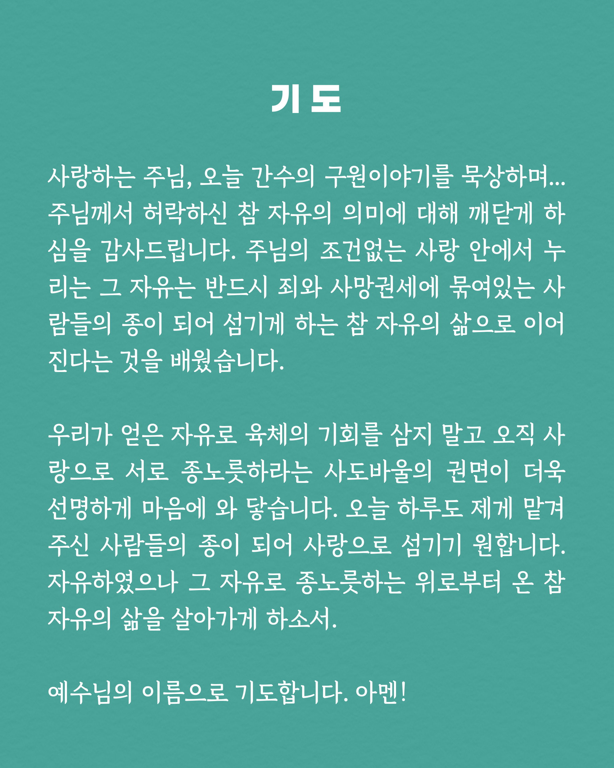 단톡방에서 성도분들과 함께 카톡으로 나눔하시면 좋아요!!