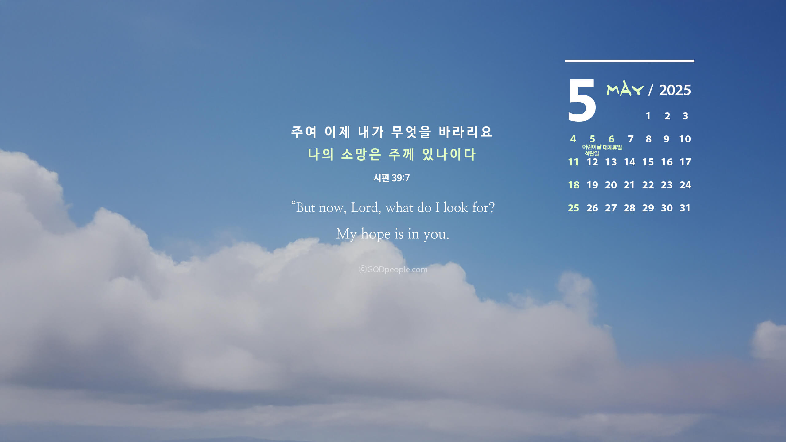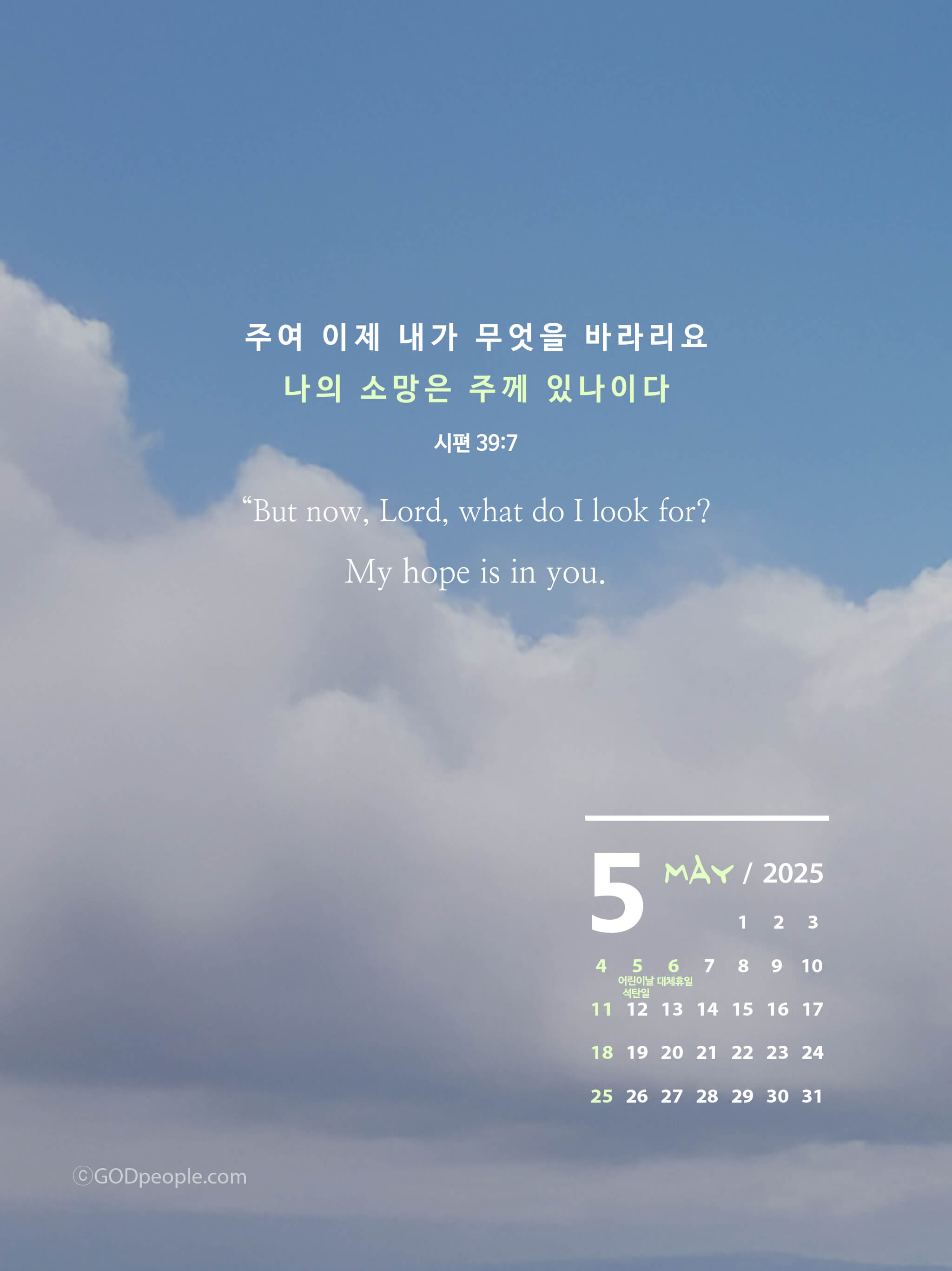 5월에는 바뀔 점이 있는지 기도하며, 주님께 지혜를 구하는 갓피플이 되면 어떨까요?