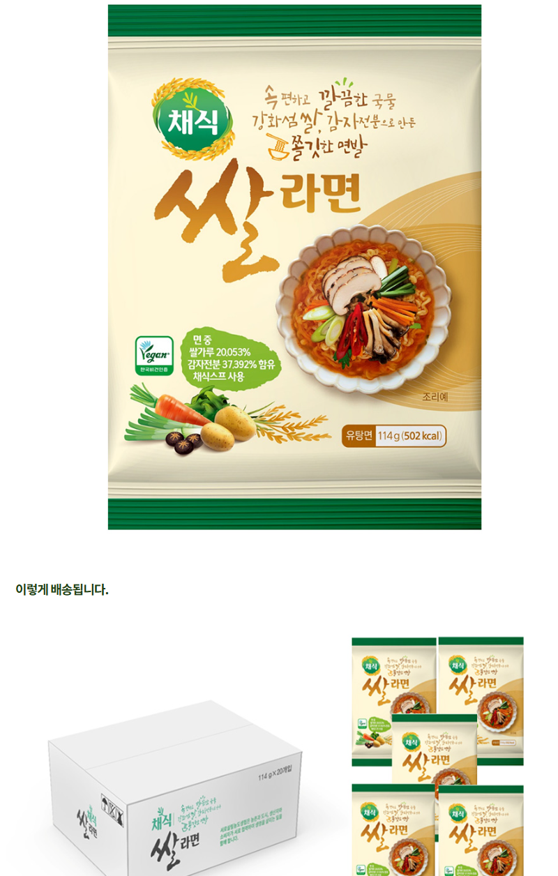 ▶무농약 강화섬쌀과 감자전분으로 만든 - 채식쌀라면