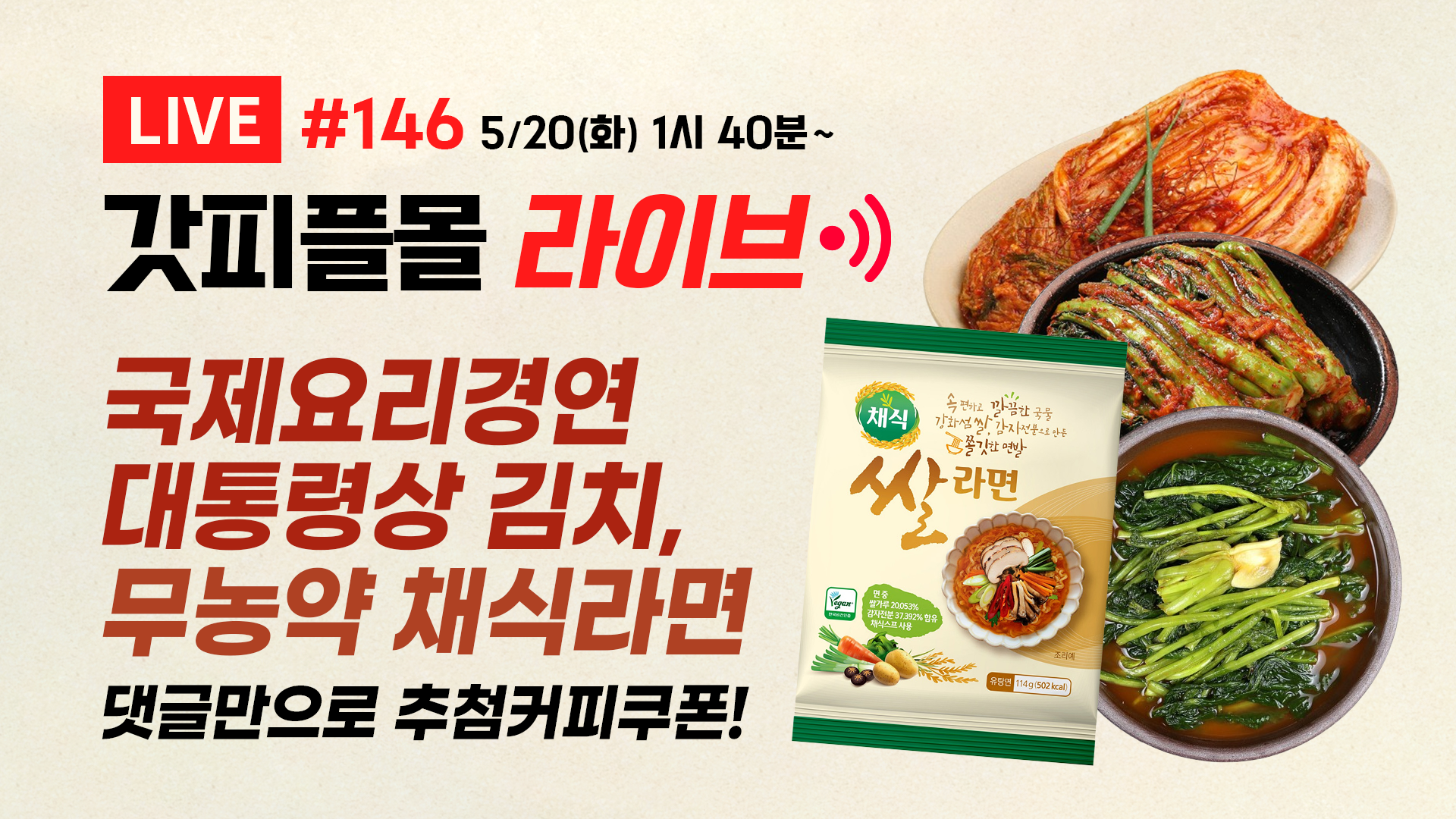 ☕김치와 쌀라면 생방송 최저가 구매, 놓치지 마시고 커피쿠폰 선물도 받으세요!