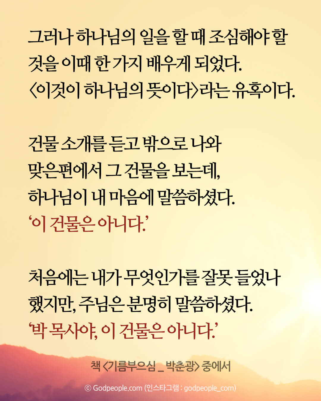 행동전에 충분히 기도하고 주님 뜻대로 되길 계속 기도해야 한다.