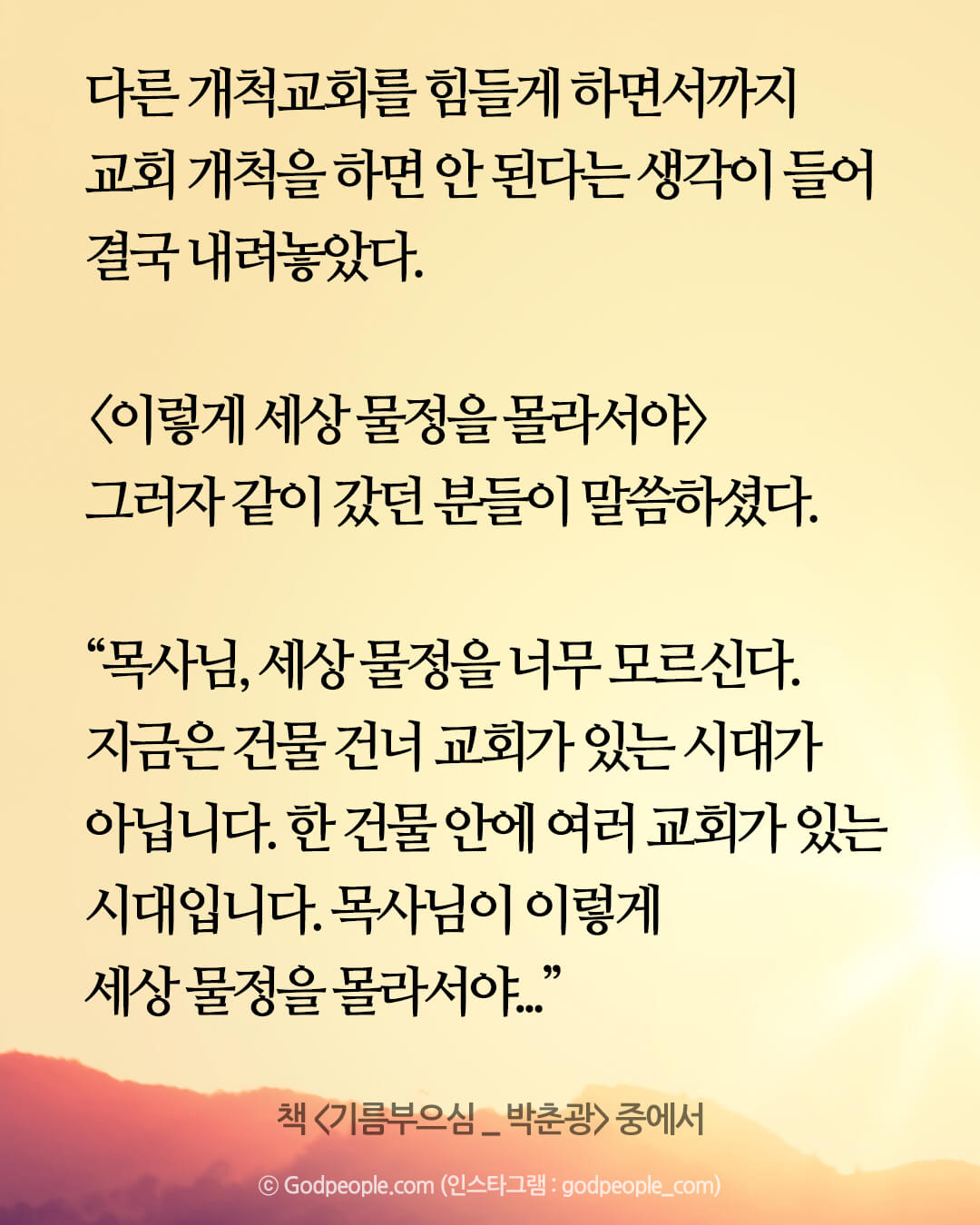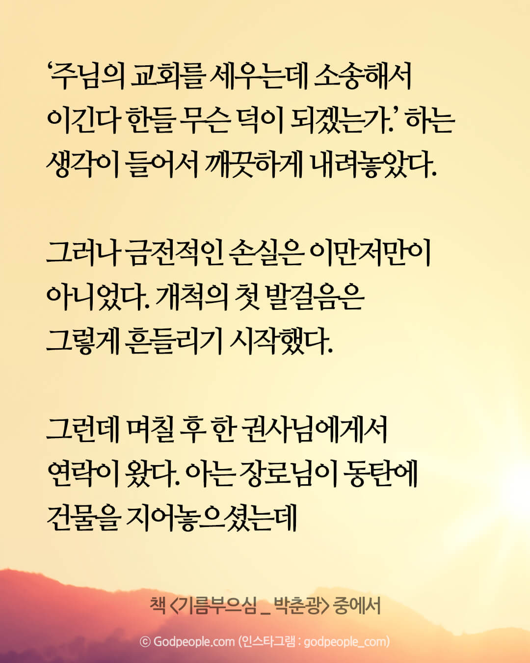 주님의 은혜가 있으면 큰 산도 평지처럼 걷는다.
