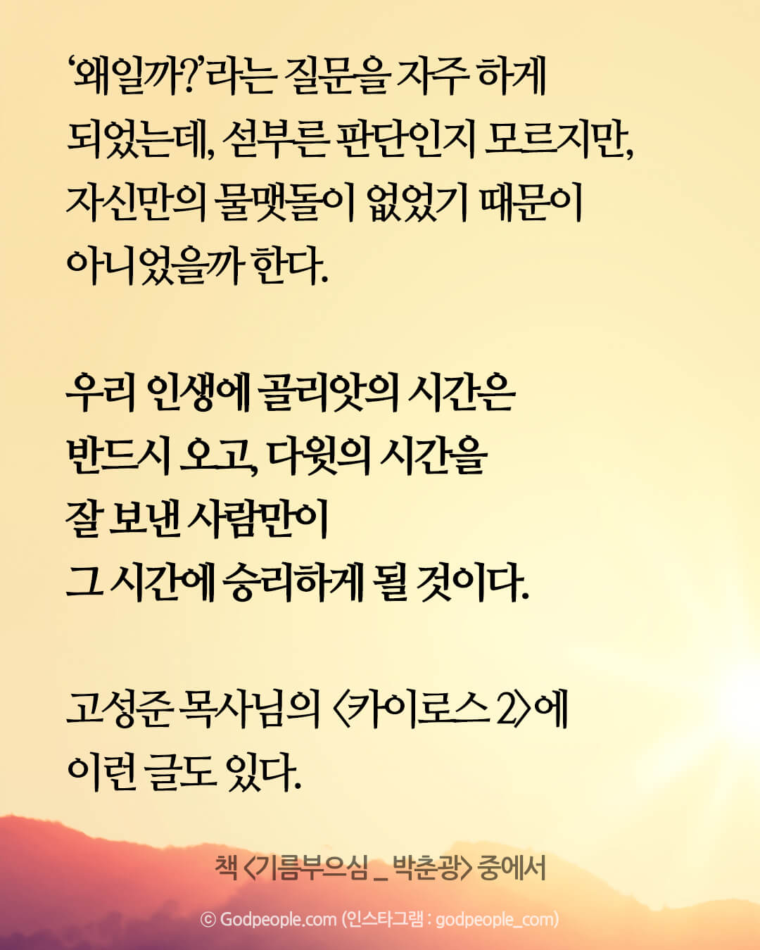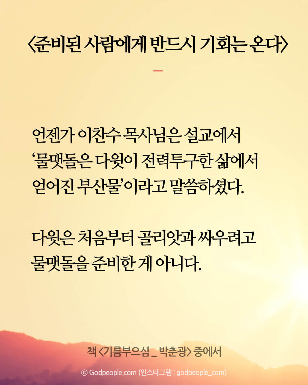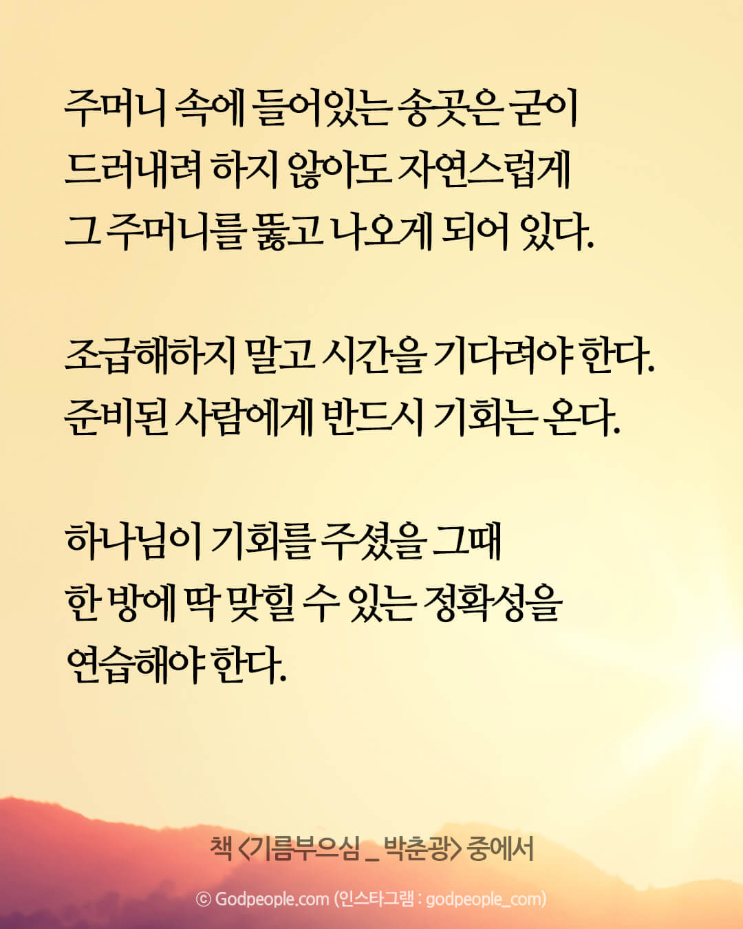 하나님이 기회를 주셨을 그때 한 방에 딱 맞힐 수 있는 정확성을 연습해야 한다.