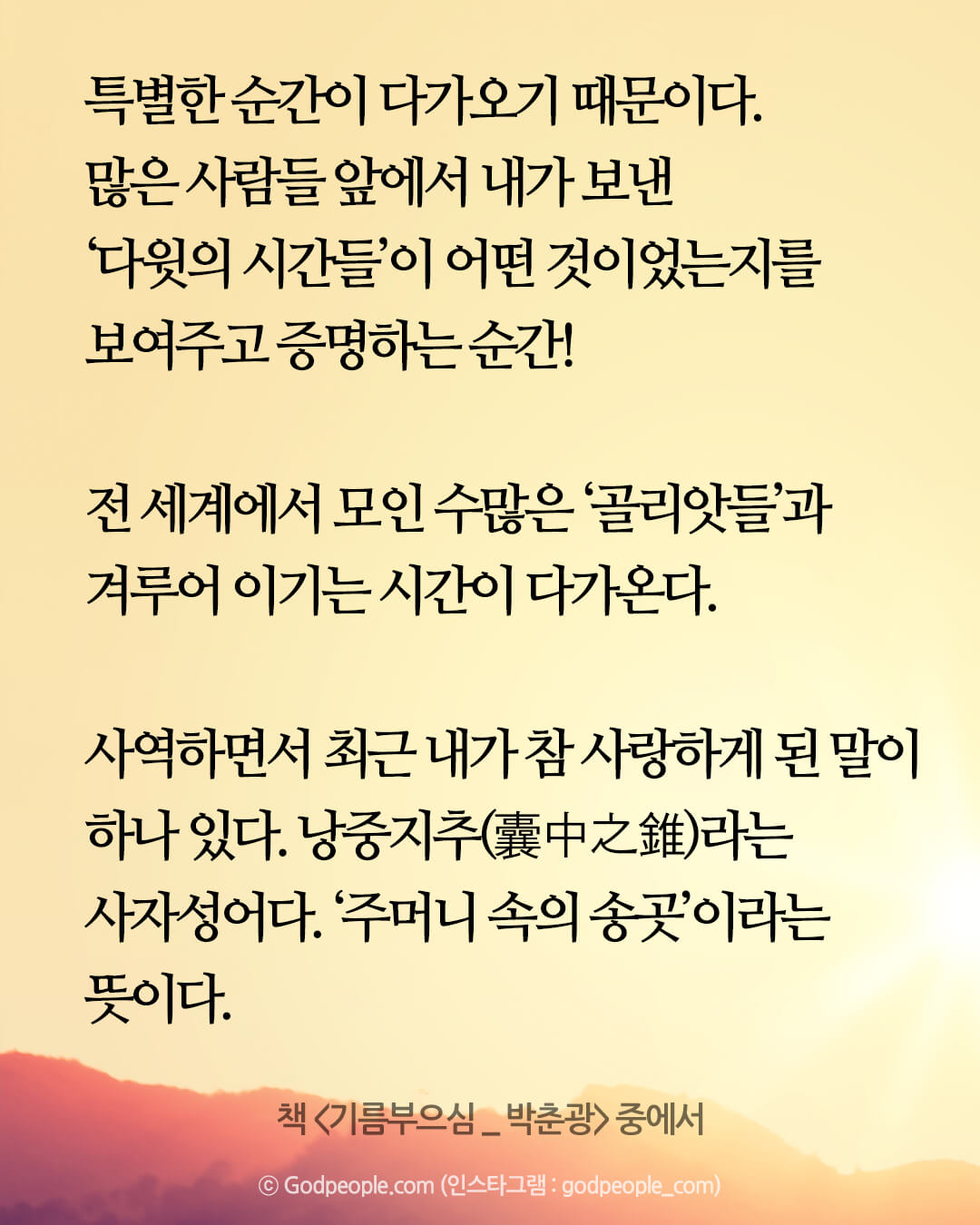 주머니 속에 들어있는 송곳은 굳이 드러내려 하지 않아도