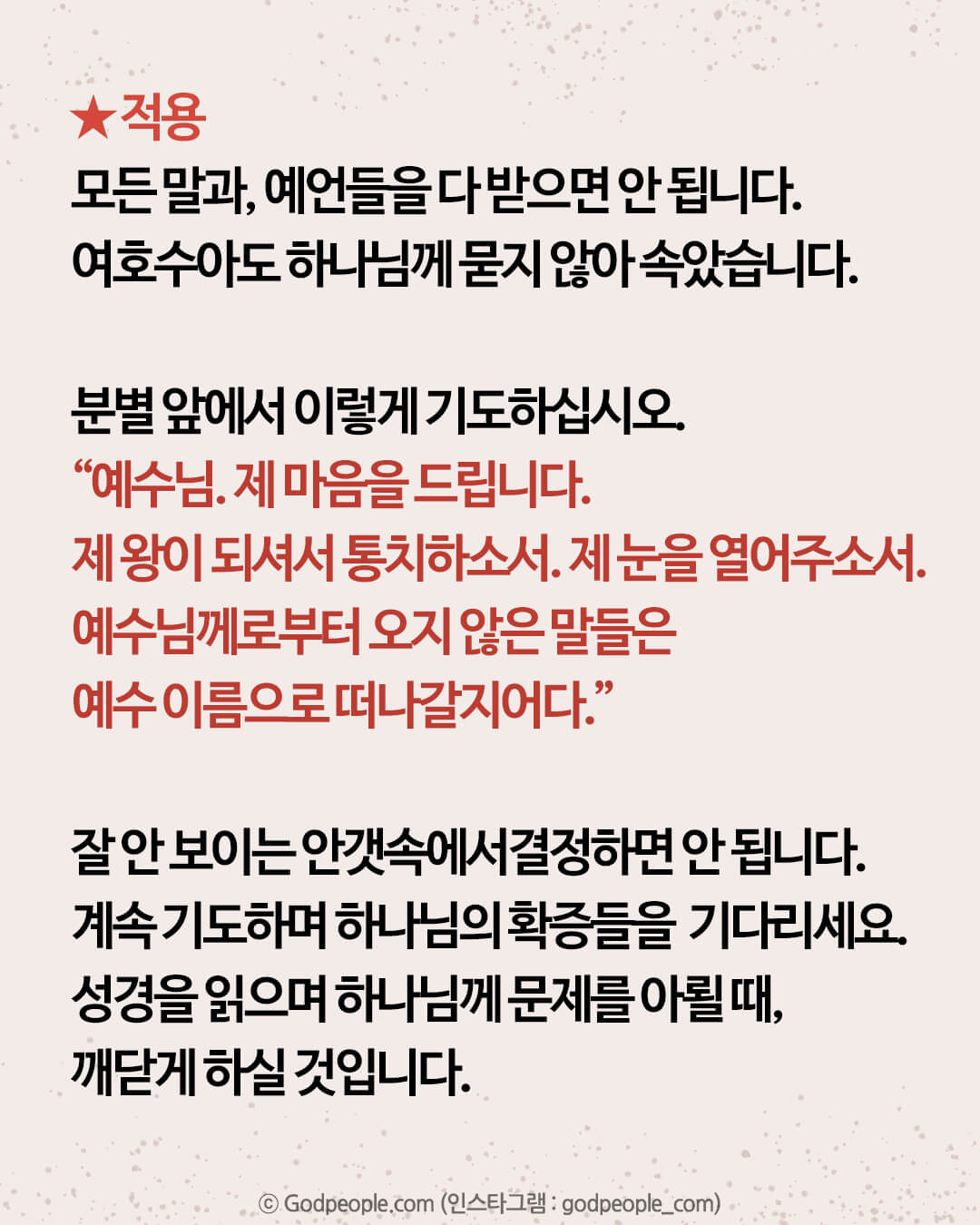 참고하되 하나님께 직접 기도하며 사인을 구하십시오.