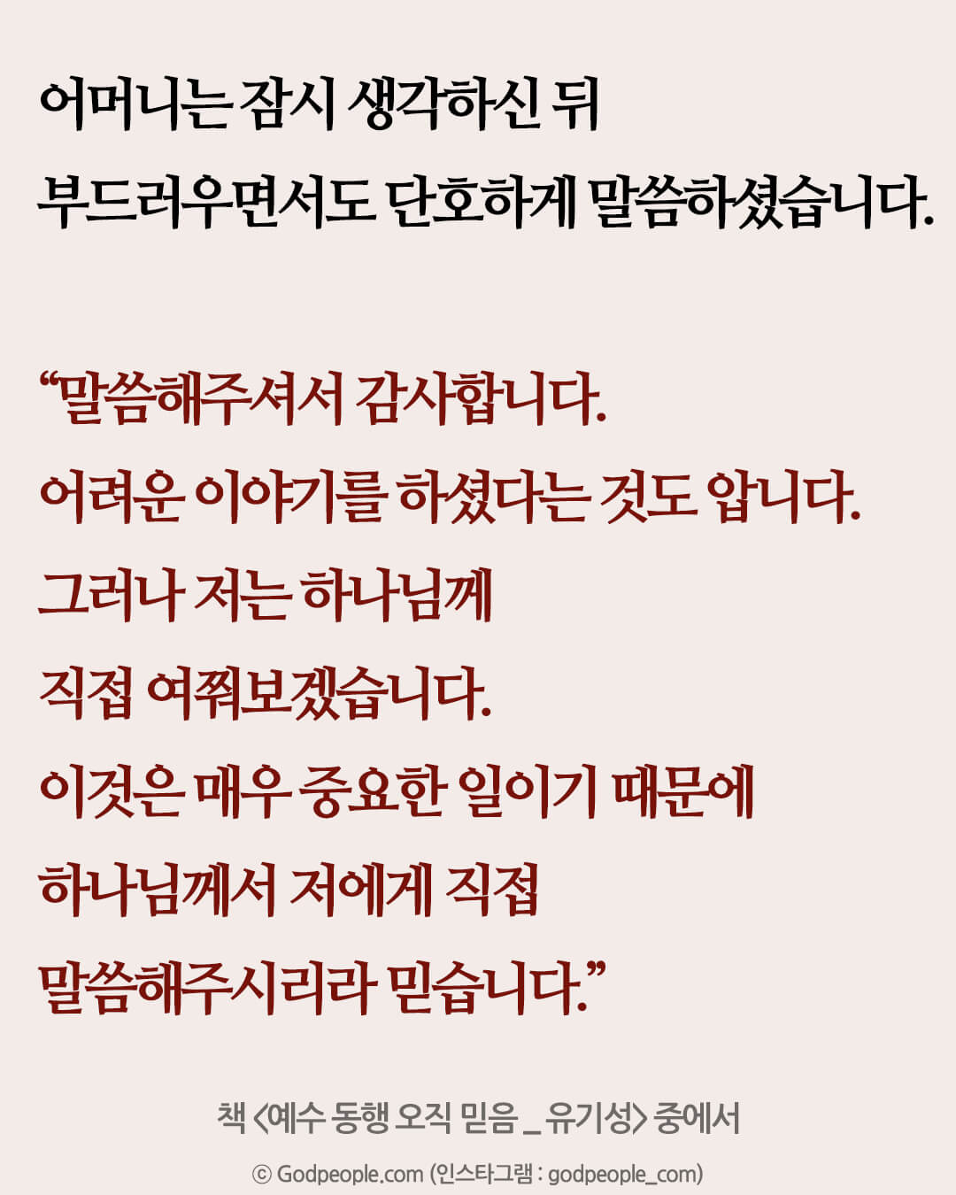 하나님께서 반드시 직접 말씀해주실 거야.”
