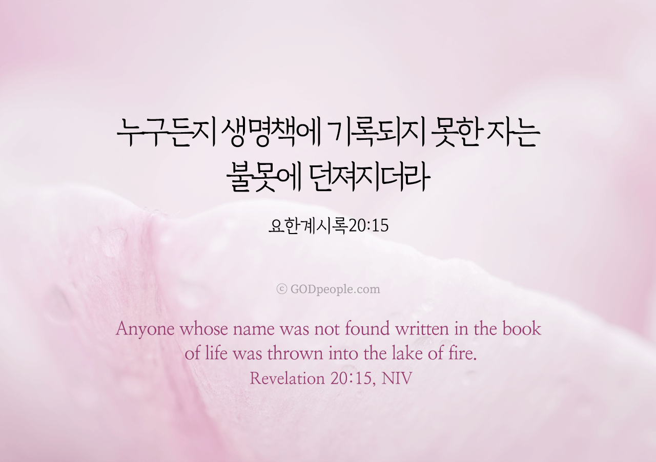 누구든지 생명책에 기록되지 못한 자는 불못에 던져지더라 _요한계시록 20:15Anyone whose name was not found written in the book of life was thrown into the lake of fire. _Revelation 20:15, NIV ♥ 교도소 재소자에게 성경책을 보내드립니다. [플로잉전용상품] 재소자에게 성경책 보내기_우리말성경 단본(실버그린)우리말성경 단본 (무색인/무지퍼/페이퍼백/실버그린/DKV2406)두란노 편집부 [플로잉전용상품] 재소자에게 성경책 보내기_큰글로 읽는 우리말 비전성경 중단본(호박색)큰글로 읽는 우리말 비전성경 중단본(색인/무지퍼/PU/호박색/DKV2206)도서출판 두란노두란노 편집부 위 성경책을 구매 (플로잉 Flowing) 하시면 "프리즌 리바이벌 PRISON REVIVAL "을 통해서 국내 교정기관의 담장 안에서 지내시는 분들에게 전달됩니다.♥ 수용자 자녀에게 성경만화, 묵상365를 보내드립니다. [플로잉전용상품] 수용자 자녀에게 성경만화 보내기_만화 예수님의 생애 세트 (전3권)온 가족이 함께 보는 사복음서김동순 [플로잉전용상품] 수용자 자녀에게 성경만화 보내기_[개역개정판] 카툰성경 세트(완간/전3권)그린이 : 키이스 닐리, 데이비드 마일즈 [플로잉전용상품] 갓피플 통해 쌀 보내기_백미 (10kg)오픈스토리 [플로잉전용상품] 맛있는 반찬보내기_김치세트 (유기농백김치+겉절이)참식품주식회사 위 상품 구매 (플로잉 Flowing) 하시면 "세움"을 통해서 수용자(교도소 재소자) 자녀들에게 전달됩니다.+오늘의말씀으로 만들었어요♡ 오늘의말씀 아크릴 자석액자+말씀을 듣고 필사하세요♡ 개역개정 MP3 다운로드 | 태블릿으로 필사 | 종이노트로 필사 좋아요아멘개척교회 돕기 2025-06-16 · 2573 · 197 · 3[주의] 계좌로 도움 요청글 발견시눌러 사용자차단을 눌러주세요!댓글 0입력댓글먼저최근순등록오늘의말씀더보기갓피플 오늘의말씀_시편11편5절갓피플 오늘의말씀_시편11편4절갓피플 오늘의말씀_로마서1장15절