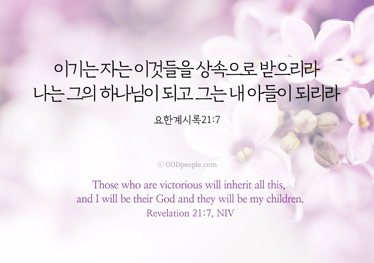 이기는 자는 이것들을 상속으로 받으리라 나는 그의 하나님이 되고 그는 내 아들이 되리라 _요한계시록 21:7Those who are victorious will inherit all this, and I will be their God and they will be my children. _Revelation 21:7, NIV ♥ 교도소 재소자에게 성경책을 보내드립니다. [플로잉전용상품] 재소자에게 성경책 보내기_우리말성경 단본(실버그린)우리말성경 단본 (무색인/무지퍼/페이퍼백/실버그린/DKV2406)두란노 편집부 [플로잉전용상품] 재소자에게 성경책 보내기_큰글로 읽는 우리말 비전성경 중단본(호박색)큰글로 읽는 우리말 비전성경 중단본(색인/무지퍼/PU/호박색/DKV2206)도서출판 두란노두란노 편집부 위 성경책을 구매 (플로잉 Flowing) 하시면 "프리즌 리바이벌 PRISON REVIVAL "을 통해서 국내 교정기관의 담장 안에서 지내시는 분들에게 전달됩니다.♥ 수용자 자녀에게 성경만화, 묵상365를 보내드립니다. [플로잉전용상품] 수용자 자녀에게 성경만화 보내기_만화 예수님의 생애 세트 (전3권)온 가족이 함께 보는 사복음서김동순 [플로잉전용상품] 수용자 자녀에게 성경만화 보내기_[개역개정판] 카툰성경 세트(완간/전3권)그린이 : 키이스 닐리, 데이비드 마일즈 [플로잉전용상품] 갓피플 통해 쌀 보내기_백미 (10kg)오픈스토리 [플로잉전용상품] 맛있는 반찬보내기_김치세트 (유기농백김치+겉절이)참식품주식회사 위 상품 구매 (플로잉 Flowing) 하시면 "세움"을 통해서 수용자(교도소 재소자) 자녀들에게 전달됩니다.+오늘의말씀으로 만들었어요♡ 오늘의말씀 아크릴 자석액자+말씀을 듣고 필사하세요♡ 개역개정 MP3 다운로드 | 태블릿으로 필사 | 종이노트로 필사 좋아요아멘개척교회 돕기 2025-06-21 · 2444 · 154 · 오늘의말씀 말씀카드 요한계시록21장7절 전도[주의] 계좌로 도움 요청글 발견시눌러 사용자차단을 눌러주세요!댓글 0입력댓글먼저최근순등록오늘의말씀더보기갓피플 오늘의말씀_시편52편8절갓피플 오늘의말씀_시편52편8절갓피플 오늘의말씀_로마서14장8절
