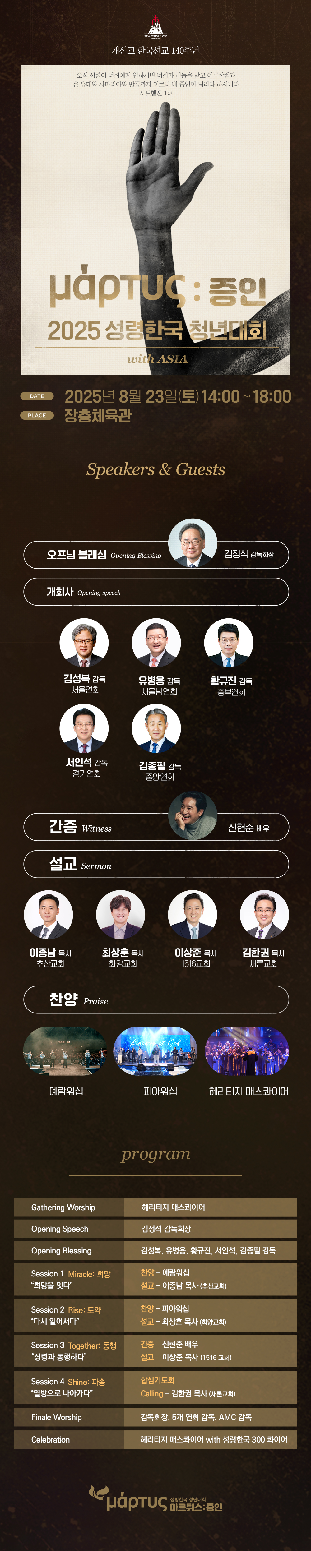 희망의 사명을 잇고, 회복의 은혜로 다시 일어서며, 성령과 동행하여, 열방으로 나아가는 증인의 여정으로 여러분을 초대합니다.