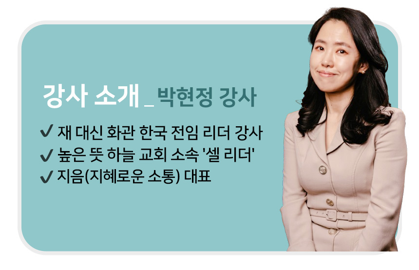 박현정 강사는 세 자녀를 믿음으로 양육하며 신앙의 깊이를 더해왔고, 교회에서 오랜 기간 셀 리더로 활동하며 성도들의 자존감과