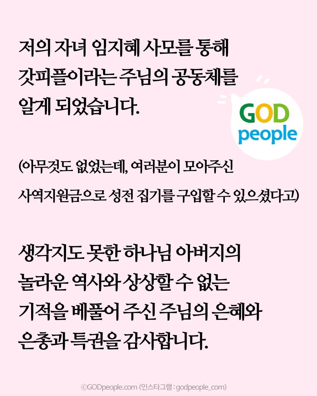 기도하며 후원해주신 갓피플님들께 너무나 감사 드려요. ㅠㅠ