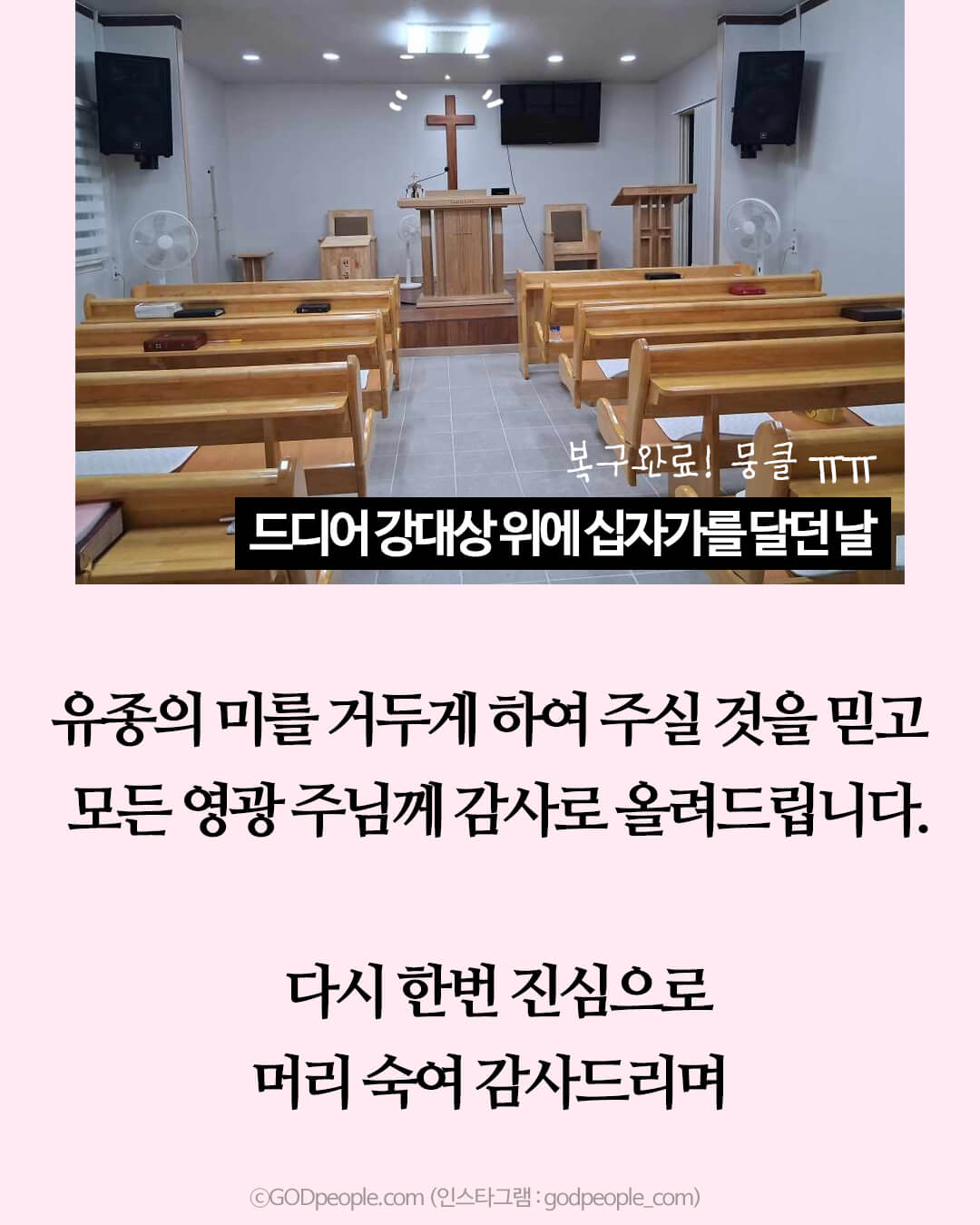 새롭게 놓여진 교회 나무 장의자들을 보면서 얼마나 감사한지요. ㅠㅠ