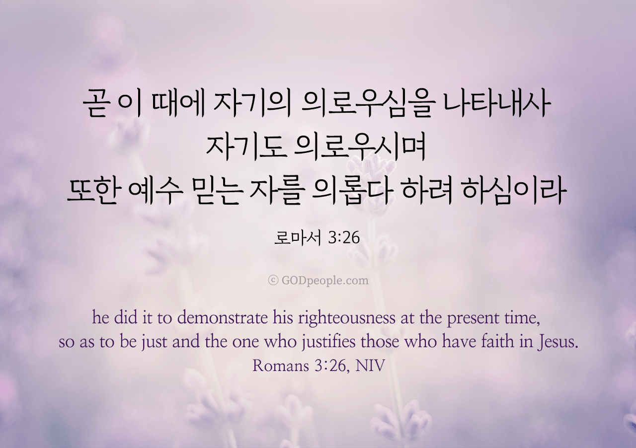 곧 이 때에 자기의 의로우심을 나타내사 자기도 의로우시며 또한 예수 믿는 자를 의롭다 하려 하심이라 _로마서 3:26he did it to demonstrate his righteousness at the present time, so as to be just and the one who justifies those who have faith in Jesus. _Romans 3:26, NIV ♥ 교도소 재소자에게 성경책을 보내드립니다. [플로잉전용상품] 재소자에게 성경책 보내기_우리말성경 단본(실버그린)우리말성경 단본 (무색인/무지퍼/페이퍼백/실버그린/DKV2406)두란노 편집부 [플로잉전용상품] 재소자에게 성경책 보내기_큰글로 읽는 우리말 비전성경 중단본(호박색)큰글로 읽는 우리말 비전성경 중단본(색인/무지퍼/PU/호박색/DKV2206)도서출판 두란노두란노 편집부 위 성경책을 구매 (플로잉 Flowing) 하시면 "프리즌 리바이벌 PRISON REVIVAL "을 통해서 국내 교정기관의 담장 안에서 지내시는 분들에게 전달됩니다.♥ 수용자 자녀에게 성경만화, 묵상365를 보내드립니다. [플로잉전용상품] 수용자 자녀에게 성경만화 보내기_만화 예수님의 생애 세트 (전3권)온 가족이 함께 보는 사복음서김동순 [플로잉전용상품] 수용자 자녀에게 성경만화 보내기_[개역개정판] 카툰성경 세트(완간/전3권)그린이 : 키이스 닐리, 데이비드 마일즈 [플로잉전용상품] 갓피플 통해 쌀 보내기_백미 (10kg)오픈스토리 [플로잉전용상품] 맛있는 반찬보내기_김치세트 (유기농백김치+겉절이)참식품주식회사 위 상품 구매 (플로잉 Flowing) 하시면 "세움"을 통해서 수용자(교도소 재소자) 자녀들에게 전달됩니다.+오늘의말씀으로 만들었어요♡ 오늘의말씀 아크릴 자석액자+말씀을 듣고 필사하세요♡ 개역개정 MP3 다운로드 | 태블릿으로 필사 | 종이노트로 필사 좋아요아멘개척교회 돕기 2025-09-11 · 5313 · 216 · 오늘의말씀말씀카드로마서3장26절전도[주의] 계좌로 도움 요청글 발견시눌러 사용자차단을 눌러주세요!댓글 0입력댓글먼저최근순등록오늘의말씀더보기갓피플 오늘의말씀_예레미야28장13절갓피플 오늘의말씀_예레미야28장12절갓피플 오늘의말씀_잠언3장6절