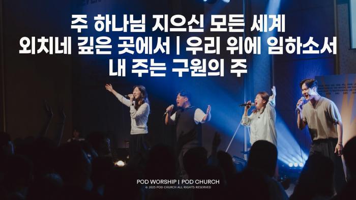 좋아요아멘개척교회 돕기 2025-09-11 · 344 · · [주의] 계좌로 도움 요청글 발견시눌러 사용자차단을 눌러주세요!댓글 0입력댓글먼저최근순등록POD Worship더보기주 하나님 지으신 모든 세계 / 외치네 깊은 곳에서 / 우리 위에 임하소서 / 내 주는 구원의 주 - 2025.08.31 POD Worship 박청비 간사 인도Sing/Jehovah/지금은 엘리야 때처럼/주 여호와는 광대하시도다/영광 영광 주 임하실 때/모든 민족과 방언들 가운데-2025.08.24 POD Worship 원유경 목사 인도Risen / Let’s Go / 찬양해 할렐루야 / 주 예수 나의 산 소망 - 2025.08.17 POD Worship 이소리 간사 인도