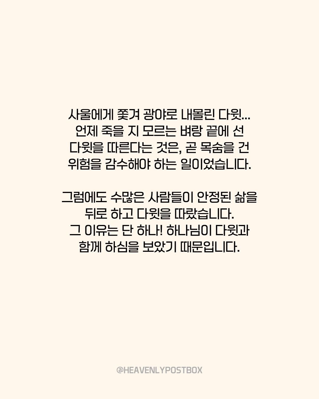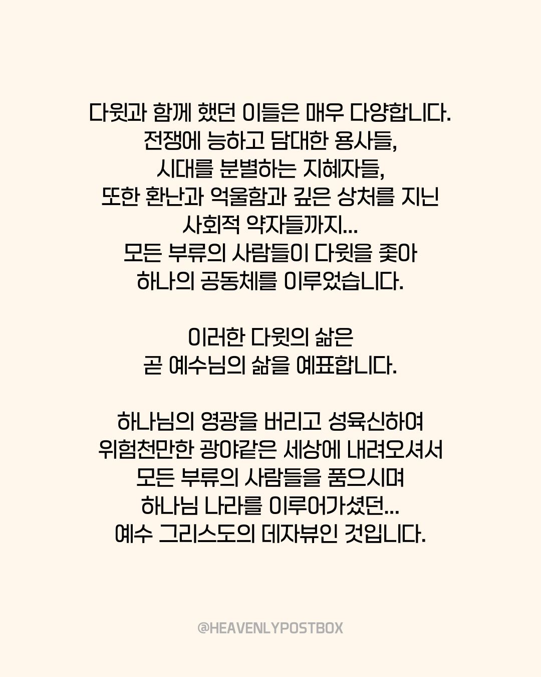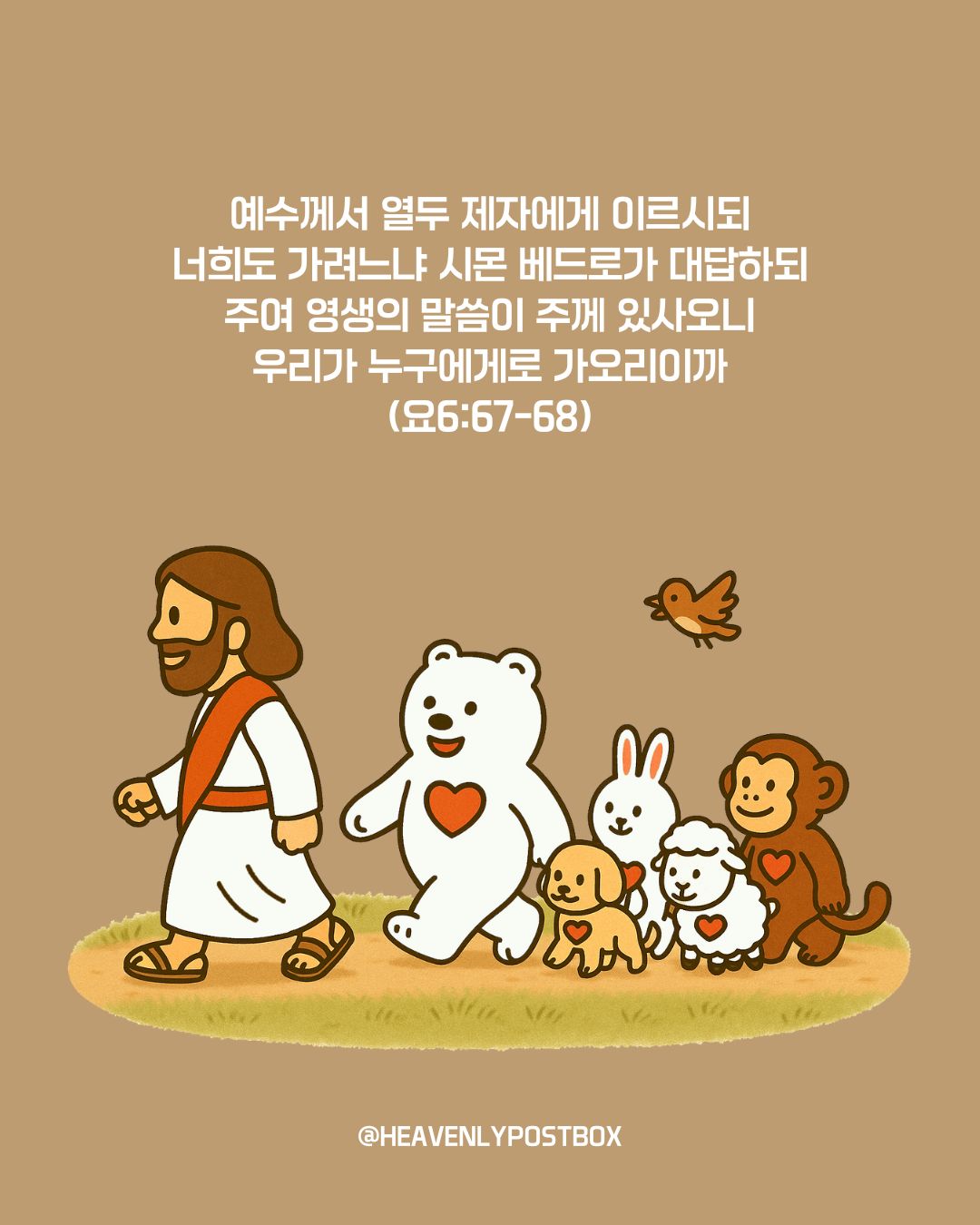 ❤️하늘우체통 큐티레터 구독하시면,매일 새벽 카톡으로 배달됩니다.https://open.kakao.com/o/g3FUFNsh❤️하늘우체통 인스타그램https://www.instagram.com/heavenlypostbox/윤홍진 작가 작품활동 응원하기!지난 20년간 갓피플 만화는 주보 사용을 무료로 제공해왔습니다. 이제는 작가들에게 작은 정성을 표현하면 어떨까요? 주보 1회 사용시 1,000원의 자발적 결제 후 이용해주세요주보사용 자발적 결제1,000원작가에게 커피 한잔선물하기좋아요아멘개척교회 돕기 2025-09-12 · 849 · 4 · 하늘우체통곰팅이만화큐티큐티만화일러스트묵상그림묵상예수님그리스도기독교기독만화경건의시간큐티하나님하나님은혜복음복음만화Jesusheavenlypostboxillustrationquiettimedevotionlovedrawingartdailyholyspiritgod곰팅이의 집_윤홍진더보기인간의 자유의지와 하나님의 주권어두움이 하는 일새 포도주는 새 부대에