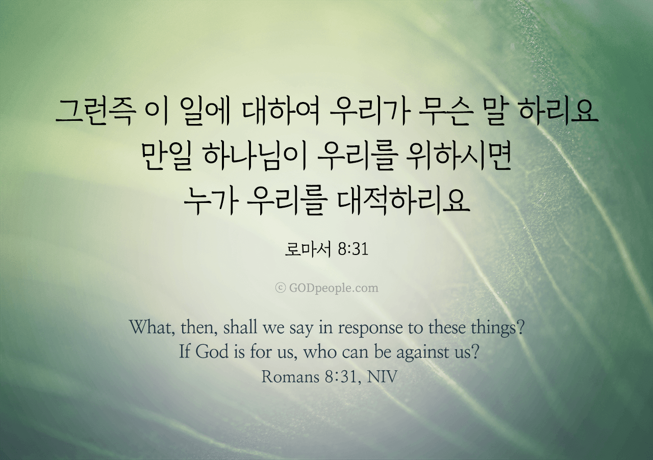 그런즉 이 일에 대하여 우리가 무슨 말 하리요 만일 하나님이 우리를 위하시면 누가 우리를 대적하리요 _로마서 8:31![]()