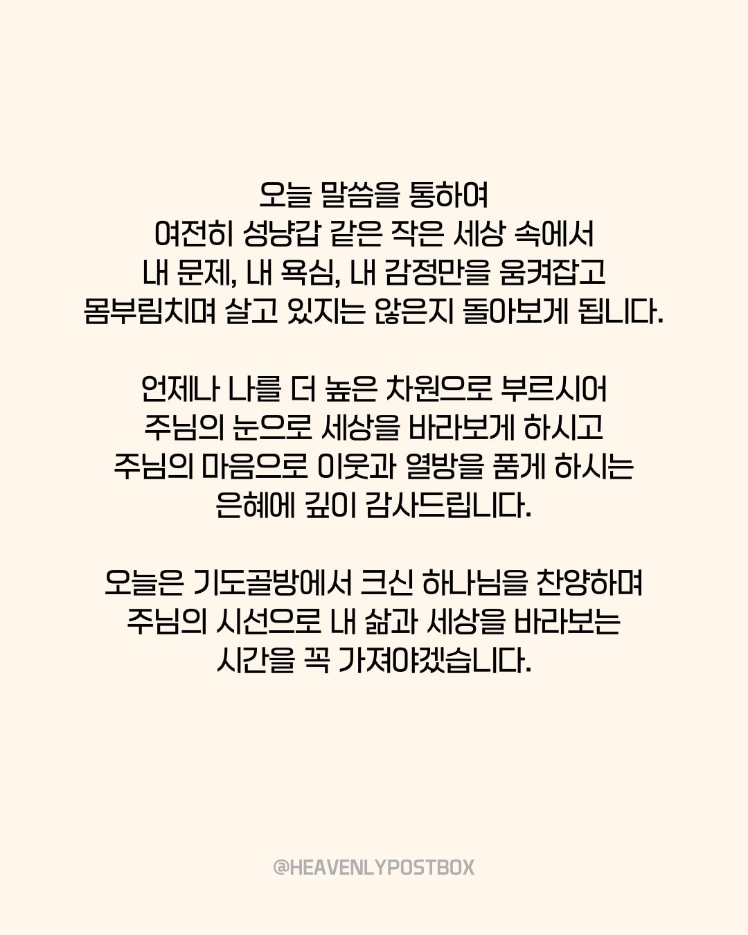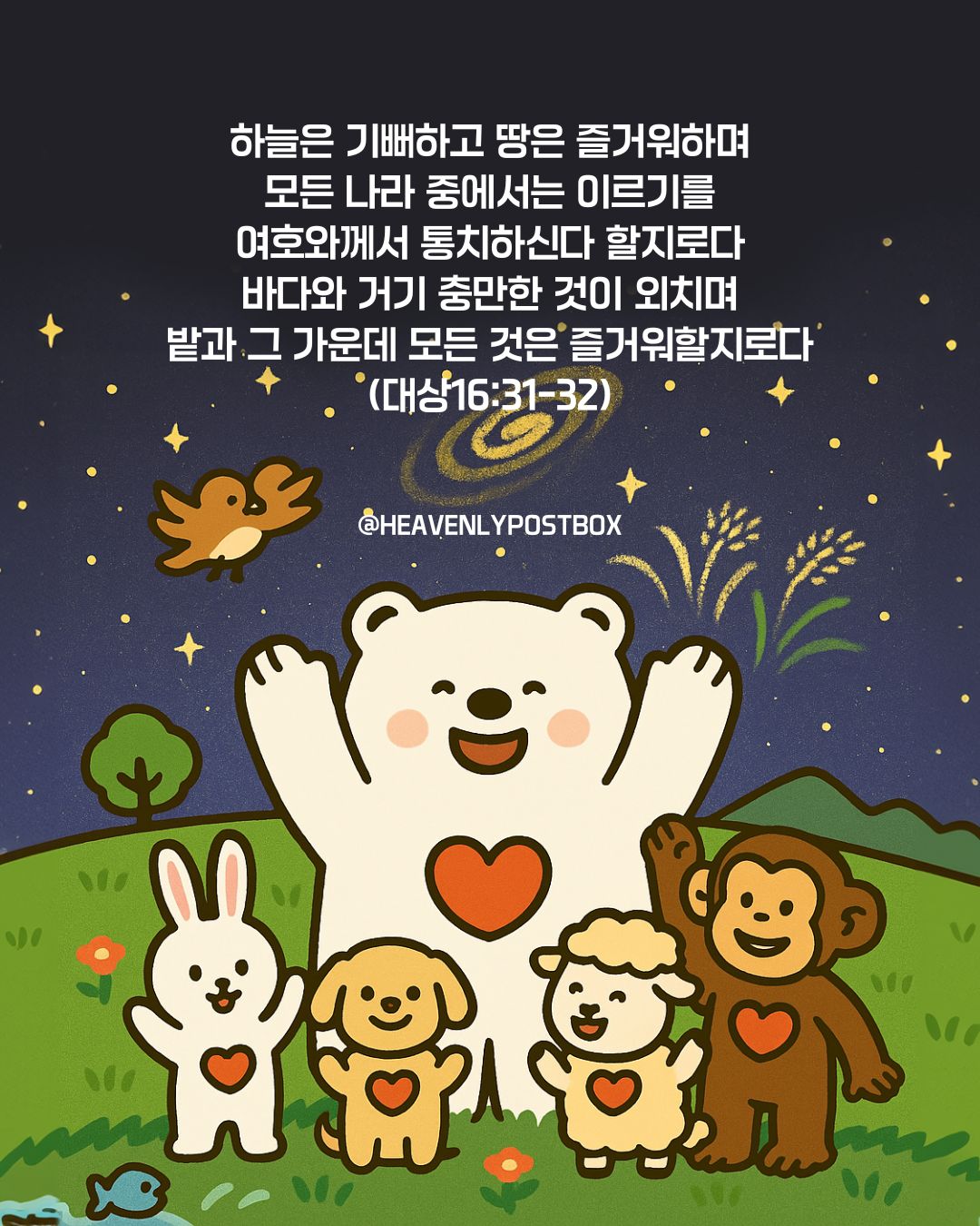 ❤️하늘우체통 큐티레터 구독하시면,매일 새벽 카톡으로 배달됩니다.(국문, 영문으로 제공)https://open.kakao.com/o/g3FUFNsh❤️하늘우체통 인스타그램https://www.instagram.com/heavenlypostbox/윤홍진 작가 작품활동 응원하기!지난 20년간 갓피플 만화는 주보 사용을 무료로 제공해왔습니다. 이제는 작가들에게 작은 정성을 표현하면 어떨까요? 주보 1회 사용시 1,000원의 자발적 결제 후 이용해주세요주보사용 자발적 결제1,000원작가에게 커피 한잔선물하기좋아요아멘개척교회 돕기 2025-09-18 · 805 · 5 · 하늘우체통 곰팅이 만화큐티 큐티만화 일러스트묵상 그림묵상 예수님 그리스도 기독교 기독만화 경건의시간 큐티 하나님 하나님은혜 복음 복음만화 Jesus heavenlypostbox illustration quiettime devotion love drawing art daily holyspirit god곰팅이의 집_윤홍진더보기사나 죽으나 주의 것이로다!소원의 항구예수그리스도의 얼굴 빛