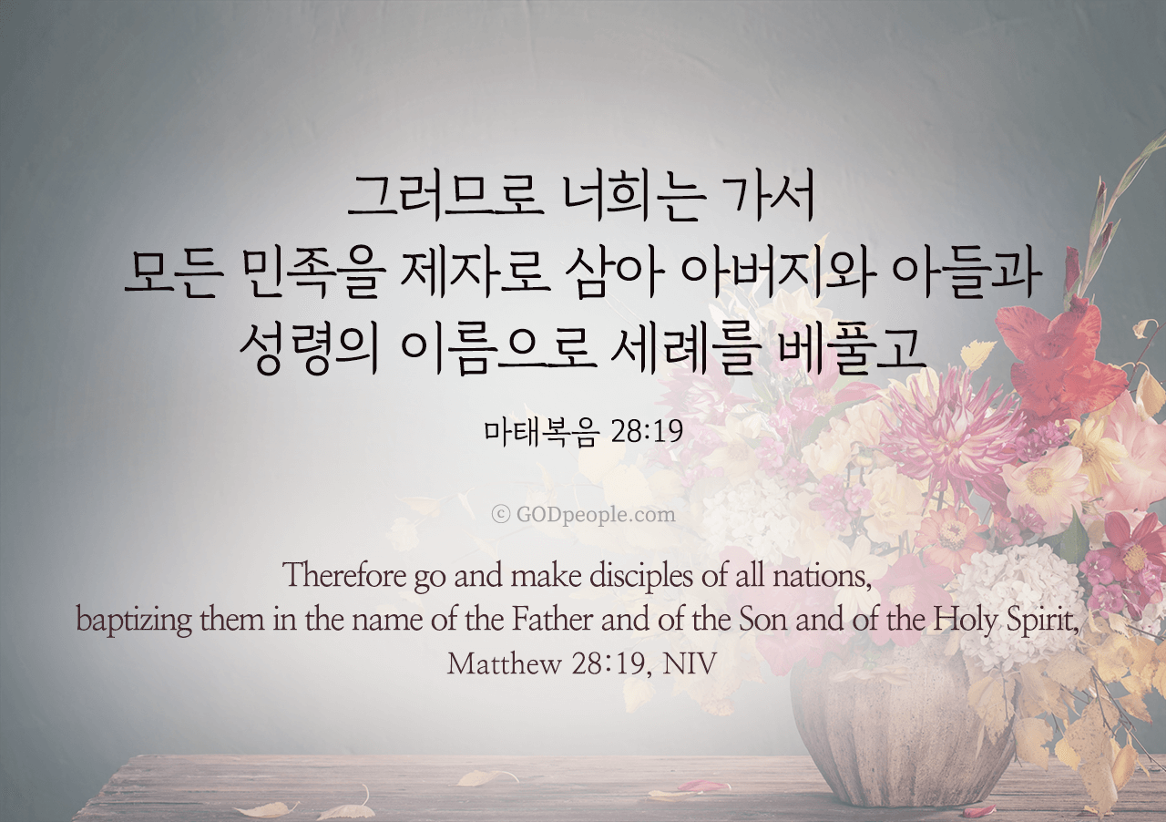 그러므로 너희는 가서 모든 민족을 제자로 삼아 아버지와 아들과 성령의 이름으로 세례를 베풀고 _마태복음 28:19Therefore go and make disciples of all nations, baptizing them in the name of the Father and of the Son and of the Holy Spirit, _Matthew 28:19, NIV ♥ 교도소 재소자에게 성경책을 보내드립니다. [플로잉전용상품] 재소자에게 성경책 보내기_우리말성경 단본(실버그린)우리말성경 단본 (무색인/무지퍼/페이퍼백/실버그린/DKV2406)두란노 편집부 [플로잉전용상품] 재소자에게 성경책 보내기_큰글로 읽는 우리말 비전성경 중단본(호박색)큰글로 읽는 우리말 비전성경 중단본(색인/무지퍼/PU/호박색/DKV2206)도서출판 두란노두란노 편집부 위 성경책을 구매 (플로잉 Flowing) 하시면 "프리즌 리바이벌 PRISON REVIVAL "을 통해서 국내 교정기관의 담장 안에서 지내시는 분들에게 전달됩니다.♥ 수용자 자녀에게 성경만화, 묵상365를 보내드립니다. [플로잉전용상품] 수용자 자녀에게 성경만화 보내기_만화 예수님의 생애 세트 (전3권)온 가족이 함께 보는 사복음서김동순 [플로잉전용상품] 수용자 자녀에게 성경만화 보내기_[개역개정판] 카툰성경 세트(완간/전3권)그린이 : 키이스 닐리, 데이비드 마일즈 [플로잉전용상품] 갓피플 통해 쌀 보내기_백미 (10kg)오픈스토리 [플로잉전용상품] 맛있는 반찬보내기_김치세트 (유기농백김치+겉절이)참식품주식회사 위 상품 구매 (플로잉 Flowing) 하시면 "세움"을 통해서 수용자(교도소 재소자) 자녀들에게 전달됩니다.+오늘의말씀으로 만들었어요♡ 오늘의말씀 아크릴 자석액자+말씀을 듣고 필사하세요♡ 개역개정 MP3 다운로드 | 태블릿으로 필사 | 종이노트로 필사 좋아요아멘개척교회 돕기 2025-09-28 · 3850 · 124 · 오늘의말씀말씀카드마태복음29장19절전도[주의] 계좌로 도움 요청글 발견시눌러 사용자차단을 눌러주세요!댓글 0입력댓글먼저최근순등록오늘의말씀더보기갓피플 오늘의말씀_디모데전서1장11절갓피플 오늘의말씀_예레미야애가3장25절갓피플 오늘의말씀_이사야1장12절