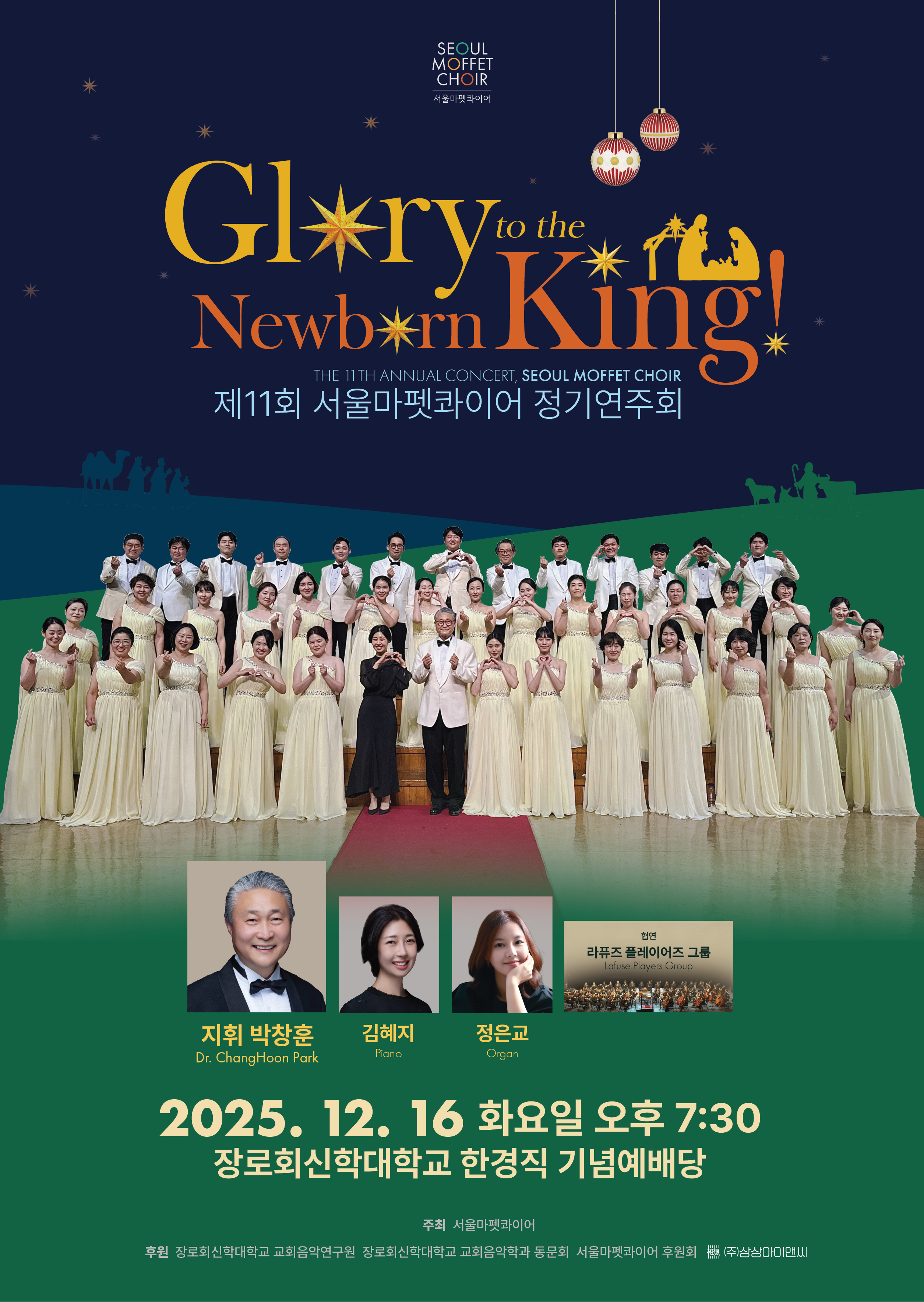 서울마펫콰이어의 이번 정기연주회는 Glory to the Newborn King이라는 제목으로, 예수님이 오심을 즐거워하며 마련하였습니다.