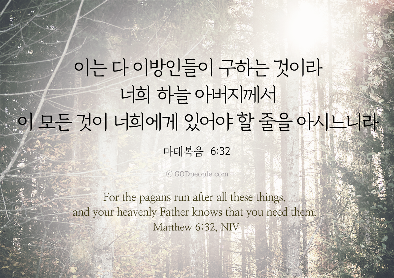 이는 다 이방인들이 구하는 것이라 너희 하늘 아버지께서 이 모든 것이 너희에게 있어야 할 줄을 아시느니라 _마태복음 6:32For the pagans run after all these things, and your heavenly Father knows that you need them. _Matthew 6:32, NIV ♥ 교도소 재소자에게 성경책을 보내드립니다. [플로잉전용상품] 재소자에게 성경책 보내기_우리말성경 단본(실버그린)우리말성경 단본 (무색인/무지퍼/페이퍼백/실버그린/DKV2406)두란노 편집부 [플로잉전용상품] 재소자에게 성경책 보내기_큰글로 읽는 우리말 비전성경 중단본(호박색)큰글로 읽는 우리말 비전성경 중단본(색인/무지퍼/PU/호박색/DKV2206)도서출판 두란노두란노 편집부 위 성경책을 구매 (플로잉 Flowing) 하시면 "프리즌 리바이벌 PRISON REVIVAL "을 통해서 국내 교정기관의 담장 안에서 지내시는 분들에게 전달됩니다.♥ 수용자 자녀에게 성경만화, 묵상365를 보내드립니다. [플로잉전용상품] 수용자 자녀에게 성경만화 보내기_만화 예수님의 생애 세트 (전3권)온 가족이 함께 보는 사복음서김동순 [플로잉전용상품] 수용자 자녀에게 성경만화 보내기_[개역개정판] 카툰성경 세트(완간/전3권)그린이 : 키이스 닐리, 데이비드 마일즈 [플로잉전용상품] 갓피플 통해 쌀 보내기_백미 (10kg)오픈스토리 [플로잉전용상품] 맛있는 반찬보내기_김치세트 (유기농백김치+겉절이)참식품주식회사 위 상품 구매 (플로잉 Flowing) 하시면 "세움"을 통해서 수용자(교도소 재소자) 자녀들에게 전달됩니다.+오늘의말씀으로 만들었어요♡ 오늘의말씀 아크릴 자석액자+말씀을 듣고 필사하세요♡ 개역개정 MP3 다운로드 | 태블릿으로 필사 | 종이노트로 필사 좋아요아멘개척교회 돕기 2025-10-07 · 3783 · 118 · 오늘의말씀 말씀카드 마태복음6장33절 전도오늘의말씀더보기갓피플 오늘의말씀_에베소서2장13절갓피플 오늘의말씀_요한복음11장40절갓피플 오늘의말씀_요한복음10장27절