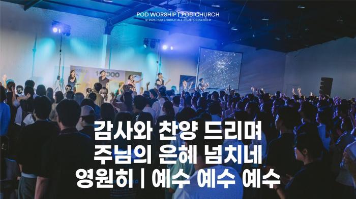 좋아요아멘개척교회 돕기 2025-10-09 · 284 · · [주의] 계좌로 도움 요청글 발견시눌러 사용자차단을 눌러주세요!댓글 0입력댓글먼저최근순등록POD Worship더보기왕이신 하나님 / 믿음 따라 / 주의 음성을 내가 들으니 / 지극히 높으신 주 - 2025.09.28 POD Worship 이소리 간사 인도감사와 찬양 드리며 / 주님의 은혜 넘치네 / 영원히 / 예수 예수 예수 - 2025.09.21 POD Worship 박청비 간사 인도주님을 맞이하며 / 우린 이겼네 / 오직 주로 인해 / 주의 아름다움은 말로다 - 2025.09.14 POD Worship 원유경 목사 인도