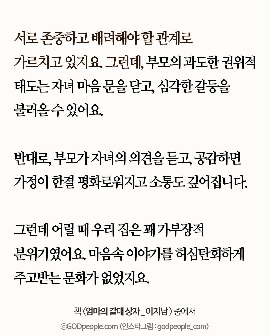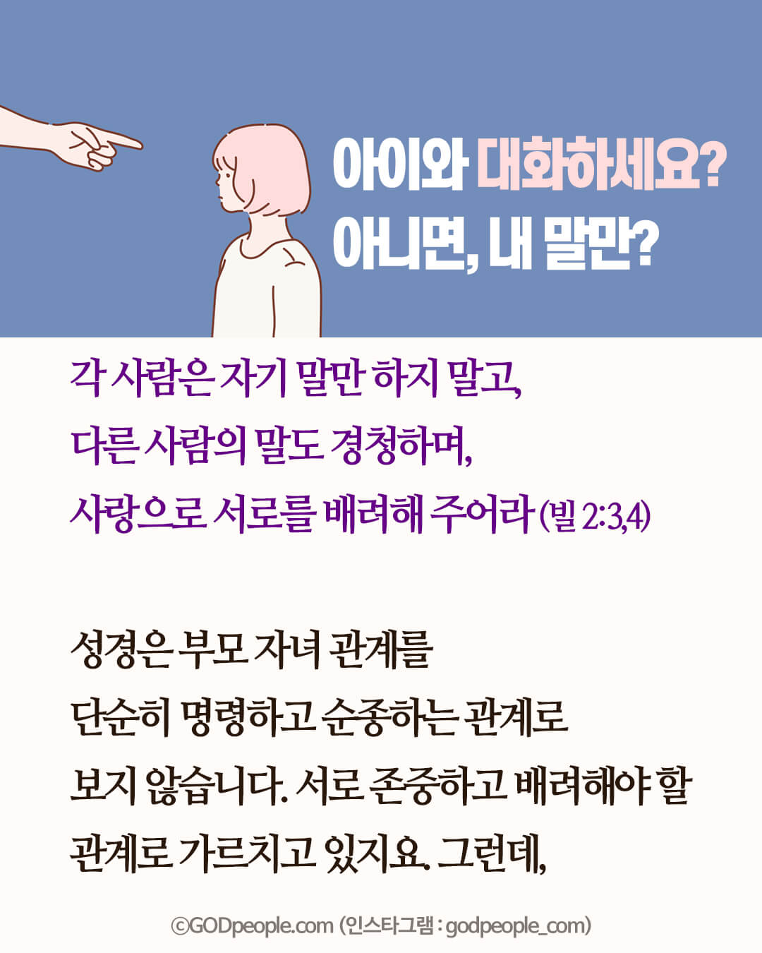 자녀를 내 뜻대로 하지 않고, 아이의 의견을 존중하며