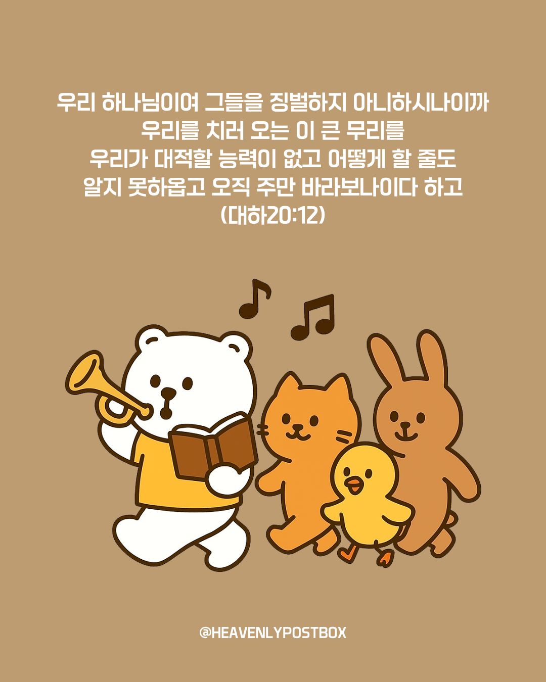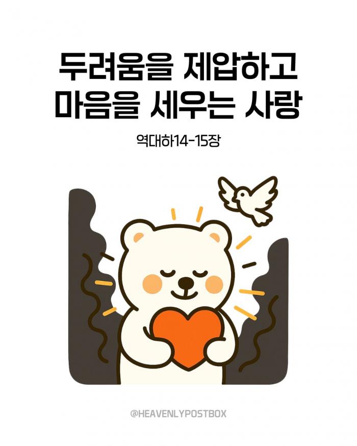 영적❤️하늘우체통 큐티레터 구독하시면,매일 새벽 카톡으로 배달됩니다.(국문, 영문으로 제공)https://open.kakao.com/o/g3FUFNsh 엽서 전도지_하나님의 러브레터 엽서전도지_세상에서 가장 소중한 이야기 (기성품/단체용 주문 가능)윤홍진 작가 작품활동 응원하기!지난 20년간 갓피플 만화는 주보 사용을 무료로 제공해왔습니다. 이제는 작가들에게 작은 정성을 표현하면 어떨까요? 주보 1회 사용시 1,000원의 자발적 결제 후 이용해주세요주보사용 자발적 결제1,000원작가에게 커피 한잔선물하기좋아요아멘개척교회 돕기 2025-10-15 · 887 · 9 · 4하늘우체통 곰팅이 만화큐티 큐티만화 일러스트묵상 그림묵상 예수님 그리스도 기독교 기독만화 경건의시간 큐티 하나님 하나님은혜 복음 복음만화 Jesus heavenlypostbox illustration quiettime devotion love drawing art daily holyspirit god[주의] 계좌로 도움 요청글 발견시눌러 사용자차단을 눌러주세요!댓글 0입력댓글먼저최근순등록곰팅이의 집_윤홍진더보기진리없는 사랑의 한계첫사랑을 잃어버린 아사 왕두려움을 제압하고 마음을 세우는 사랑