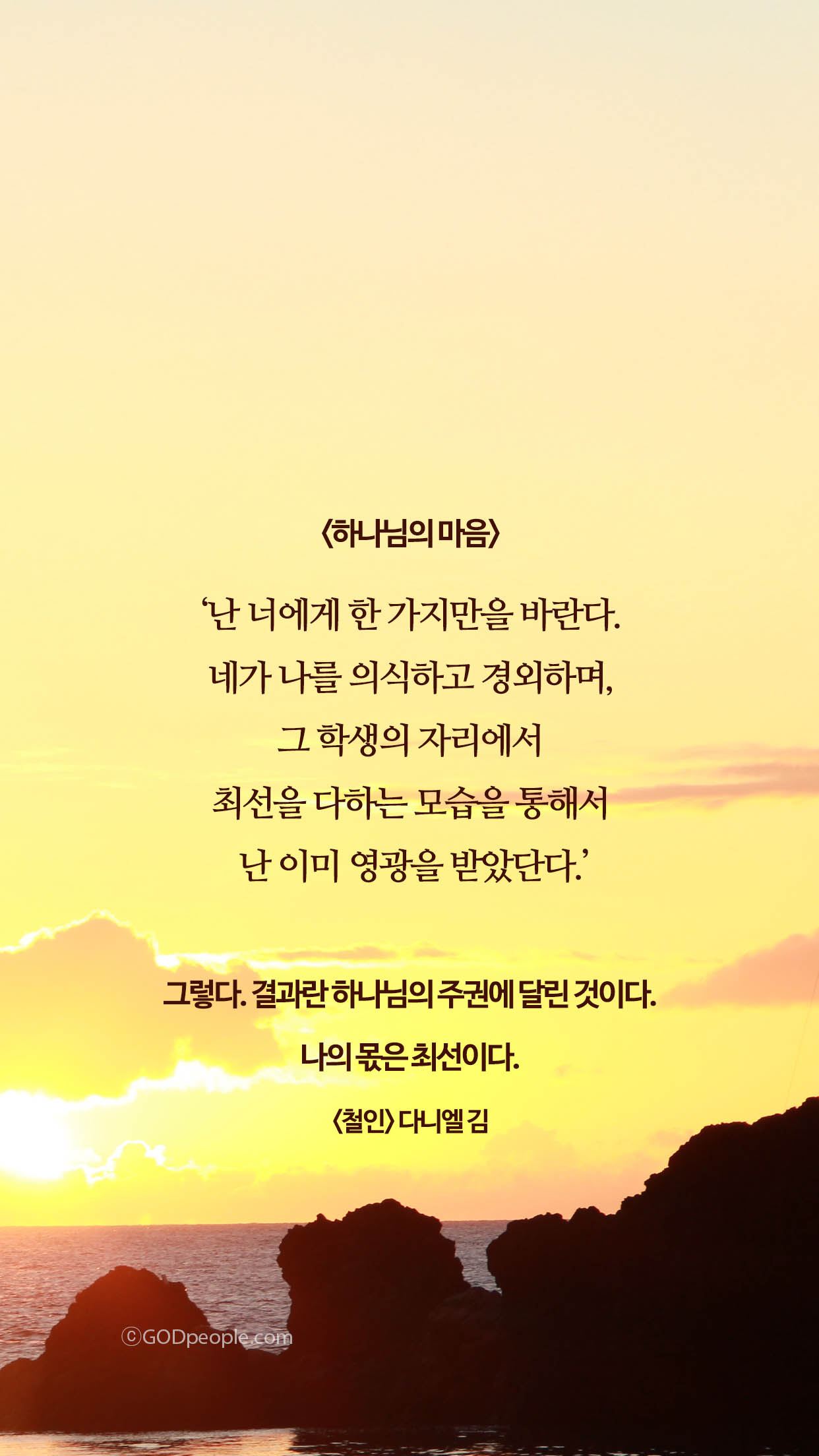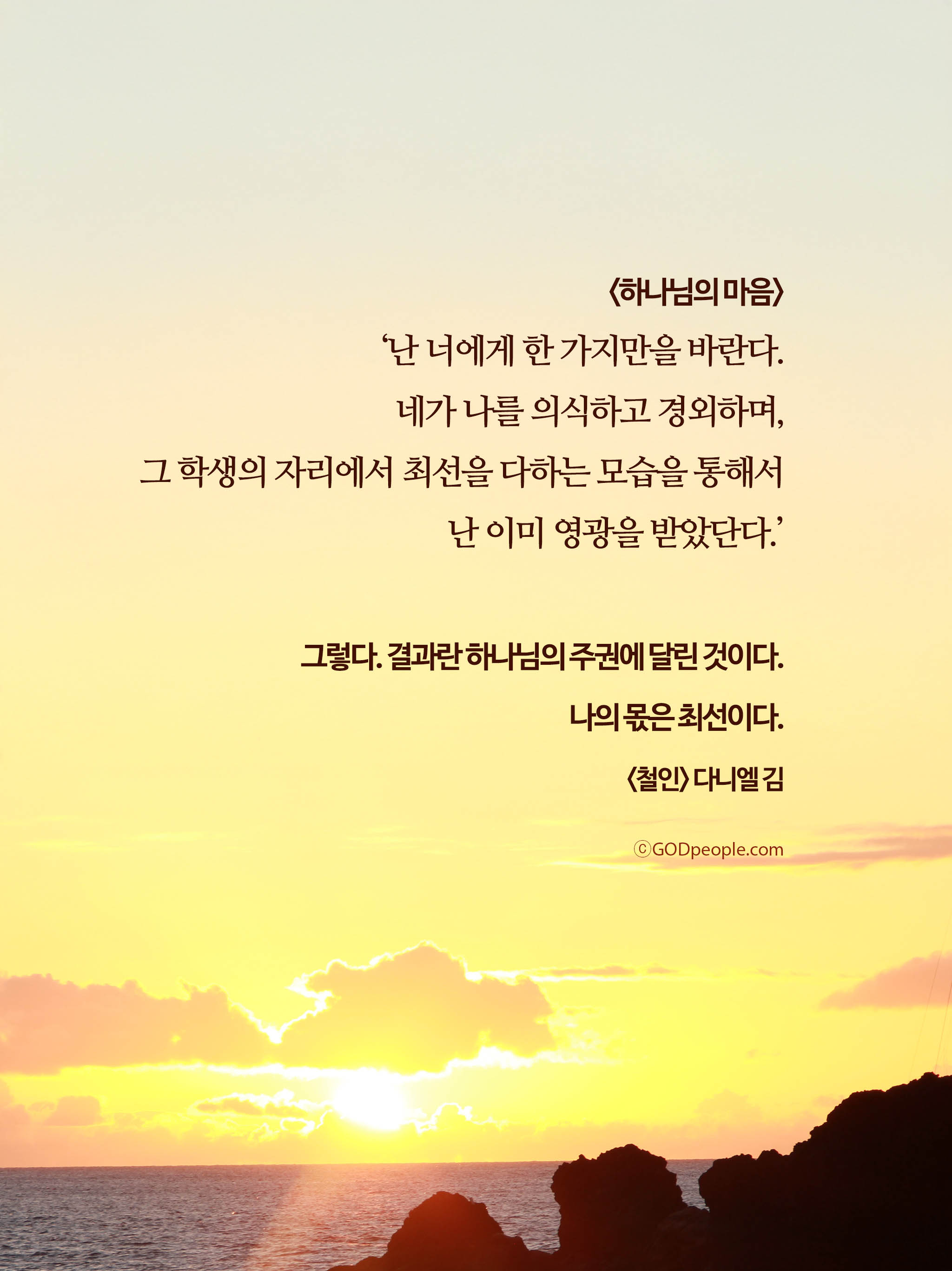 "결과는 주님께 맡기고 내 몫은 최선이다." 라고 하는 <철인>책의 내용처럼요.