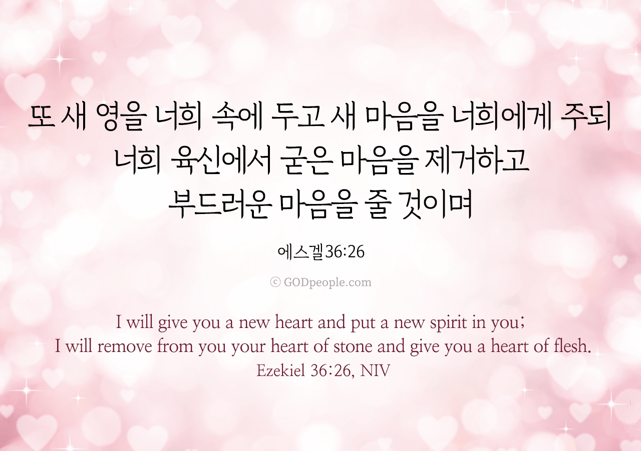 또 새 영을 너희 속에 두고 새 마음을 너희에게 주되 너희 육신에서 굳은 마음을 제거하고 부드러운 마음을 줄 것이며 _에스겔 36:26I will give you a new heart and put a new spirit in you; I will remove from you your heart of stone and give you a heart of flesh. _Ezekiel 36:26, NIV ♥ 교도소 재소자에게 성경책을 보내드립니다. [플로잉전용상품] 재소자에게 성경책 보내기_우리말성경 단본(실버그린)우리말성경 단본 (무색인/무지퍼/페이퍼백/실버그린/DKV2406)두란노 편집부 [플로잉전용상품] 재소자에게 성경책 보내기_큰글로 읽는 우리말 비전성경 중단본(호박색)큰글로 읽는 우리말 비전성경 중단본(색인/무지퍼/PU/호박색/DKV2206)도서출판 두란노두란노 편집부 위 성경책을 구매 (플로잉 Flowing) 하시면 "프리즌 리바이벌 PRISON REVIVAL "을 통해서 국내 교정기관의 담장 안에서 지내시는 분들에게 전달됩니다.♥ 수용자 자녀에게 성경만화, 묵상365를 보내드립니다. [플로잉전용상품] 수용자 자녀에게 성경만화 보내기_만화 예수님의 생애 세트 (전3권)온 가족이 함께 보는 사복음서김동순 [플로잉전용상품] 수용자 자녀에게 성경만화 보내기_[개역개정판] 카툰성경 세트(완간/전3권)그린이 : 키이스 닐리, 데이비드 마일즈 [플로잉전용상품] 갓피플 통해 쌀 보내기_백미 (10kg)오픈스토리 [플로잉전용상품] 맛있는 반찬보내기_김치세트 (유기농백김치+겉절이)참식품주식회사 위 상품 구매 (플로잉 Flowing) 하시면 "세움"을 통해서 수용자(교도소 재소자) 자녀들에게 전달됩니다.+오늘의말씀으로 만들었어요♡ 오늘의말씀 아크릴 자석액자+말씀을 듣고 필사하세요♡ 개역개정 MP3 다운로드 | 태블릿으로 필사 | 종이노트로 필사 좋아요아멘개척교회 돕기 2025-11-24 · 2886 · 259 · 오늘의말씀 말씀카드 에스겔36장26절 전도[주의] 계좌로 도움 요청글 발견시눌러 사용자차단을 눌러주세요!댓글 0입력댓글먼저최근순등록오늘의말씀더보기갓피플 오늘의말씀_에스겔36장23절갓피플 오늘의말씀_예레미야1장5절갓피플 오늘의말씀_고린도전서3장23절