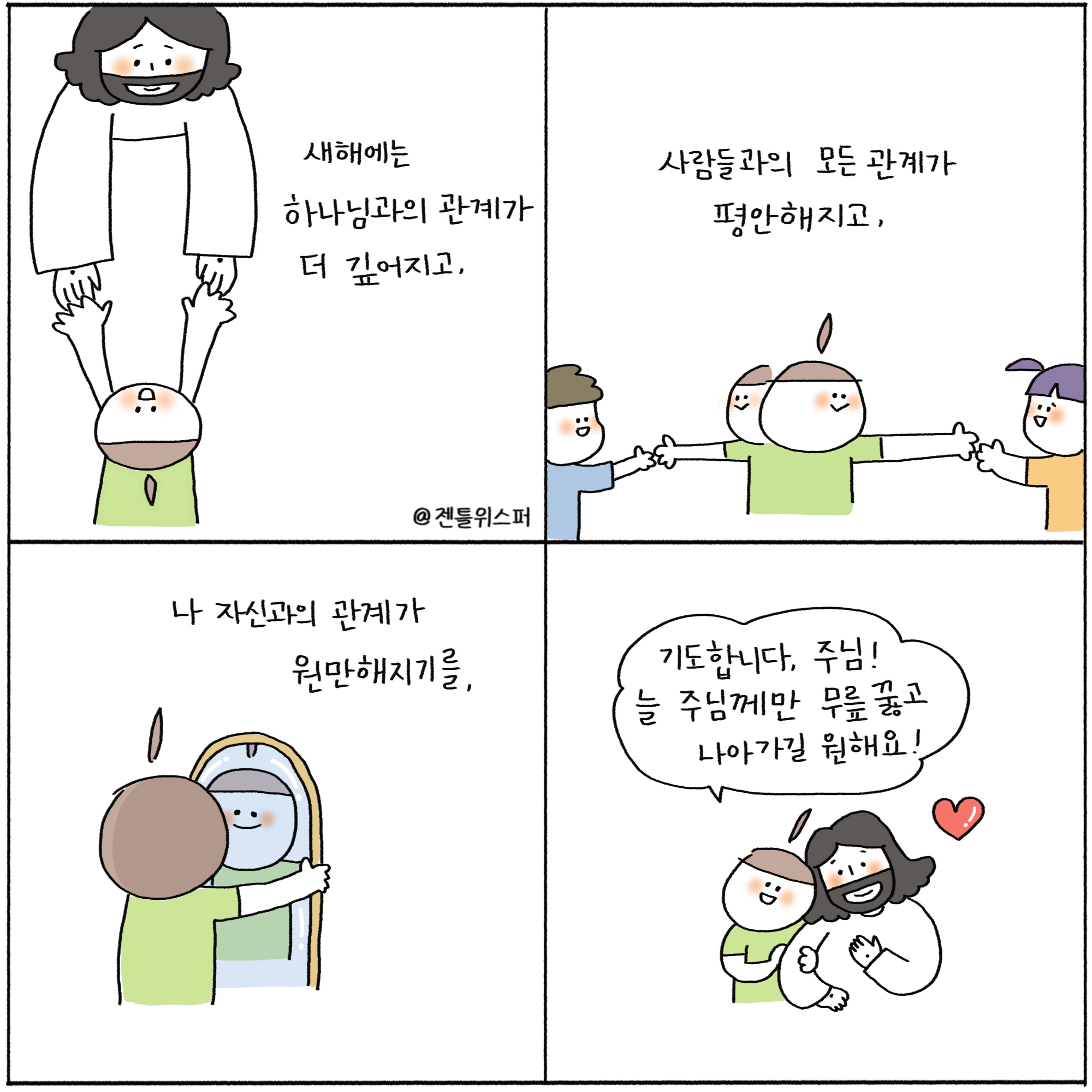 주보용 4컷 묵상 142 정신 차려 보니 나 왜 여기 by 젠틀위스퍼 / 다운로드(파일)jpg / 2000*2000pixel / 300dpi / 737KB 주보용 4컷 묵상 131 도저히 못 믿겠는 상황에서도 by 젠틀위스퍼 / 다운로드(파일)jpg / 2000*2000pixel / 300dpi / 806KB최세미 작가 작품활동 응원하기!지난 20년간 갓피플 만화는 주보 사용을 무료로 제공해왔습니다. 이제는 작가들에게 작은 정성을 표현하면 어떨까요? 주보 1회 사용시 1,000원의 자발적 결제 후 이용해주세요주보사용 자발적 결제1,000원작가에게 커피 한잔선물하기좋아요아멘개척교회 돕기 2025-12-12 · 999 · 18 · 3새해 기도제목 관계 기도 우선순위는 하나님오직 예수[주의] 계좌로 도움 요청글 발견시눌러 사용자차단을 눌러주세요!댓글 0입력댓글먼저최근순등록God's gentle whisper_최세미더보기메리 크리스마스!왜 이렇게 염려하나 했더니쓰잘데기 없는 걱정과 염려...