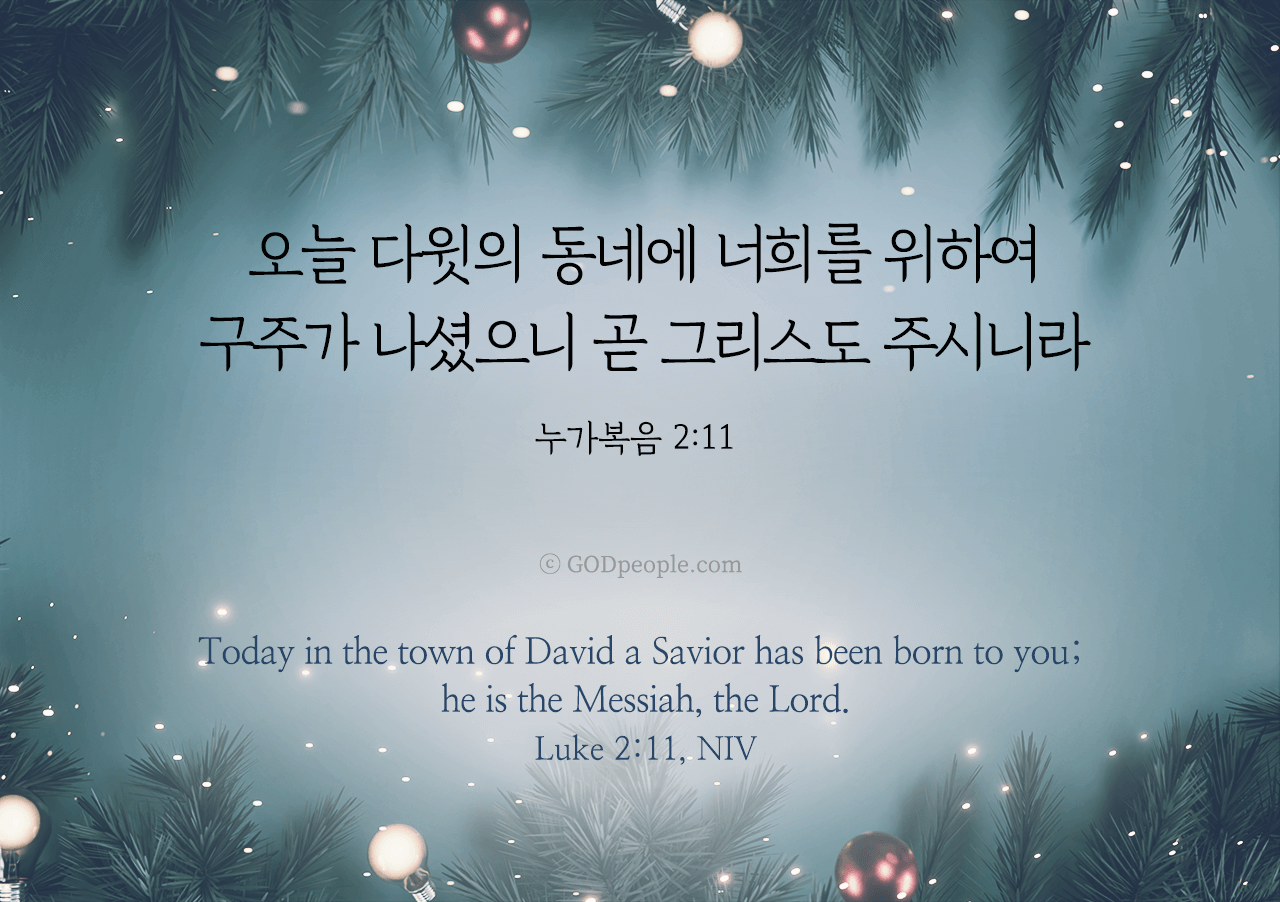 오늘 다윗의 동네에 너희를 위하여 구주가 나셨으니 곧 그리스도 주시니라 _누가복음 2:11Today in the town of David a Savior has been born to you; he is the Messiah, the Lord. _Luke 2:11, NIV ♥ 교도소 재소자에게 성경책을 보내드립니다. [플로잉전용상품] 재소자에게 성경책 보내기_우리말성경 단본(실버그린)우리말성경 단본 (무색인/무지퍼/페이퍼백/실버그린/DKV2406)두란노 편집부 [플로잉전용상품] 재소자에게 성경책 보내기_큰글로 읽는 우리말 비전성경 중단본(호박색)큰글로 읽는 우리말 비전성경 중단본(색인/무지퍼/PU/호박색/DKV2206)도서출판 두란노두란노 편집부 위 성경책을 구매 (플로잉 Flowing) 하시면 "프리즌 리바이벌 PRISON REVIVAL "을 통해서 국내 교정기관의 담장 안에서 지내시는 분들에게 전달됩니다.♥ 수용자 자녀에게 성경만화, 묵상365를 보내드립니다. [플로잉전용상품] 수용자 자녀에게 성경만화 보내기_만화 예수님의 생애 세트 (전3권)온 가족이 함께 보는 사복음서김동순 [플로잉전용상품] 수용자 자녀에게 성경만화 보내기_[개역개정판] 카툰성경 세트(완간/전3권)그린이 : 키이스 닐리, 데이비드 마일즈 [플로잉전용상품] 갓피플 통해 쌀 보내기_백미 (10kg)오픈스토리 [플로잉전용상품] 맛있는 반찬보내기_김치세트 (유기농백김치+겉절이)참식품주식회사 위 상품 구매 (플로잉 Flowing) 하시면 "세움"을 통해서 수용자(교도소 재소자) 자녀들에게 전달됩니다.+오늘의말씀으로 만들었어요♡ 오늘의말씀 아크릴 자석액자+말씀을 듣고 필사하세요♡ 개역개정 MP3 다운로드 | 태블릿으로 필사 | 종이노트로 필사 좋아요아멘개척교회 돕기 2025-12-25 · 3256 · 355 · 1오늘의말씀 말씀카드 누가복음2장11 전도[주의] 계좌로 도움 요청글 발견시눌러 사용자차단을 눌러주세요!댓글 0입력댓글먼저최근순등록오늘의말씀더보기갓피플 오늘의말씀_에베소서4장5절갓피플 오늘의말씀_사도행전1장8절갓피플 오늘의말씀_시편25편5절