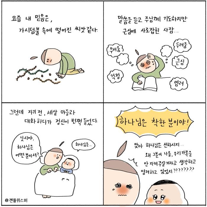 주보용 4컷 묵상 151 내가 만들어 온 사랑의 기준 by 젠틀위스퍼 / 다운로드(파일)jpg / 2000*2000pixel / 300dpi / 800KB 주보용 4컷 묵상 135 새해에는 반드시 말씀을 by 젠틀위스퍼 / 다운로드(파일)jpg / 2000*2000pixel / 300dpi / 547KB최세미 작가 작품활동 응원하기!지난 20년간 갓피플 만화는 주보 사용을 무료로 제공해왔습니다. 이제는 작가들에게 작은 정성을 표현하면 어떨까요? 주보 1회 사용시 1,000원의 자발적 결제 후 이용해주세요주보사용 자발적 결제1,000원작가에게 커피 한잔선물하기좋아요아멘개척교회 돕기 2025-12-21 · 848 · 9 · 3내려놓음 거짓말 거짓 내려놓음 착각 거짓 고백 돌아보기 회개합니다 진짜 내려놓기 기도 기도만이 답 정답은 예수그리스도[주의] 계좌로 도움 요청글 발견시눌러 사용자차단을 눌러주세요!댓글 0입력댓글먼저최근순등록God's gentle whisper_최세미더보기새해에도 관계를 위해 기도합니다메리 크리스마스!왜 이렇게 염려하나 했더니