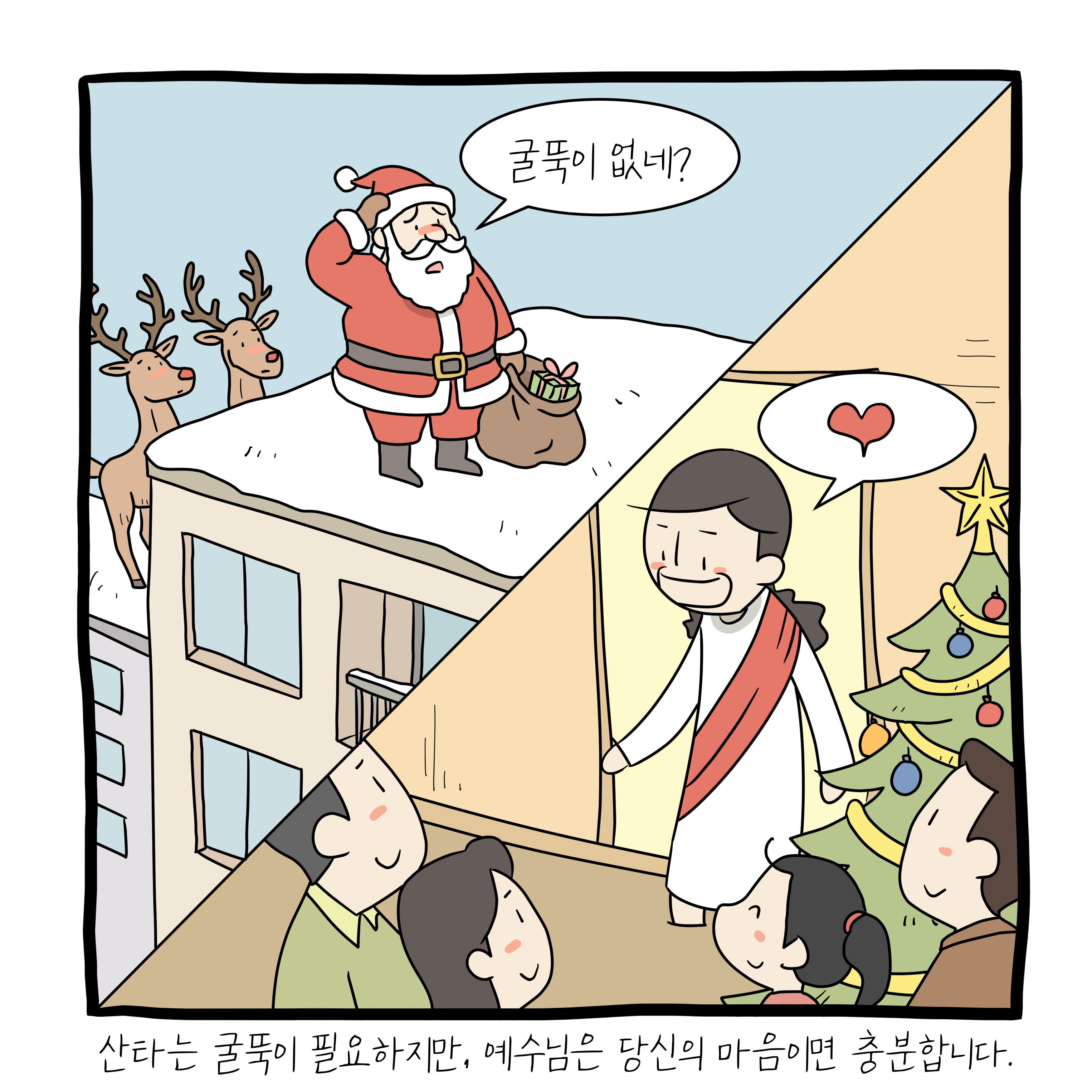 산타는 굴뚝이 없어서 들어오지 못하고