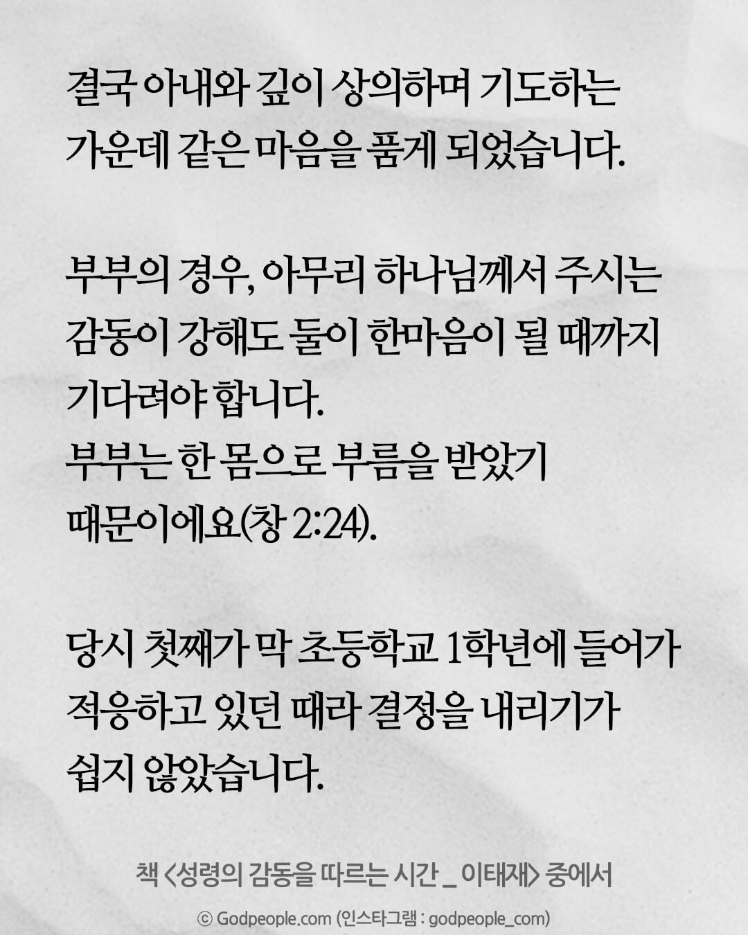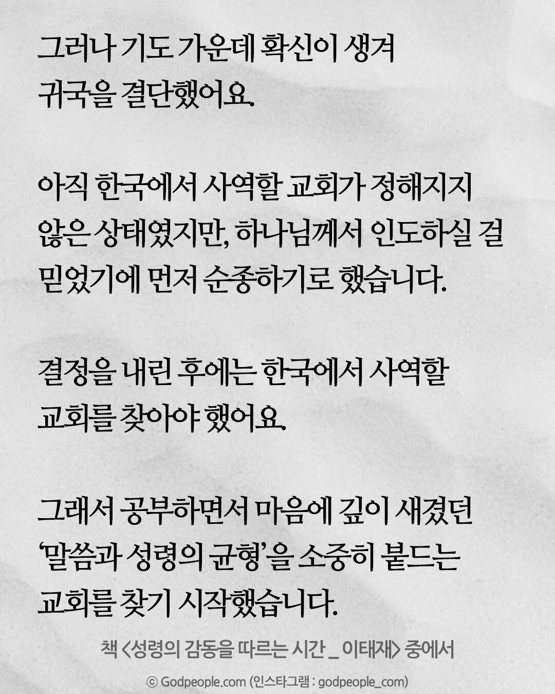 성령의 감동을 잘못 받았다고 해도 절대 후회하지 않았을 거예요.