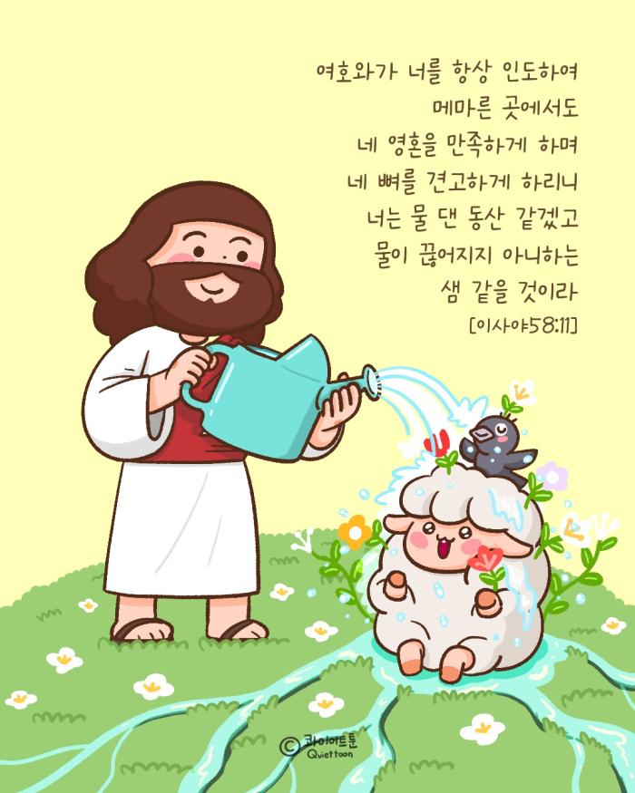 오늘도 말씀이 필요해 365 그림 일력콰이어트툰(홍기두) 어린이 로빈슨 크루소원작-대니얼 디포,각색- 장보영,그림-홍기두홍기두 작가 작품활동 응원하기!지난 20년간 갓피플 만화는 주보 사용을 무료로 제공해왔습니다. 이제는 작가들에게 작은 정성을 표현하면 어떨까요? 주보 1회 사용시 1,000원의 자발적 결제 후 이용해주세요주보사용 자발적 결제1,000원작가에게 커피 한잔선물하기좋아요아멘개척교회 돕기 2026-01-12 · 550 · 16 · 4그림묵상시편힘콰이어트툰[주의] 계좌로 도움 요청글 발견시눌러 사용자차단을 눌러주세요!댓글 0입력댓글먼저최근순등록콰이어트툰_홍기두더보기성령의 열매너는 물 댄 동산 같겠고새해 복 많이 받으세요
