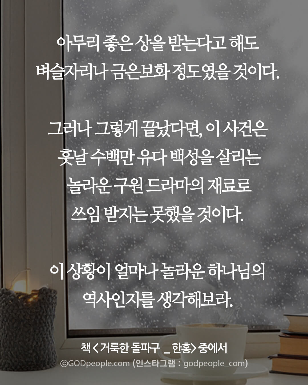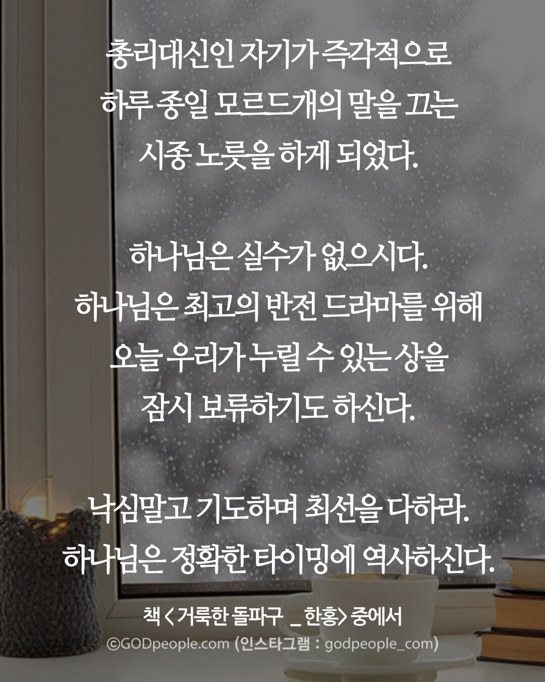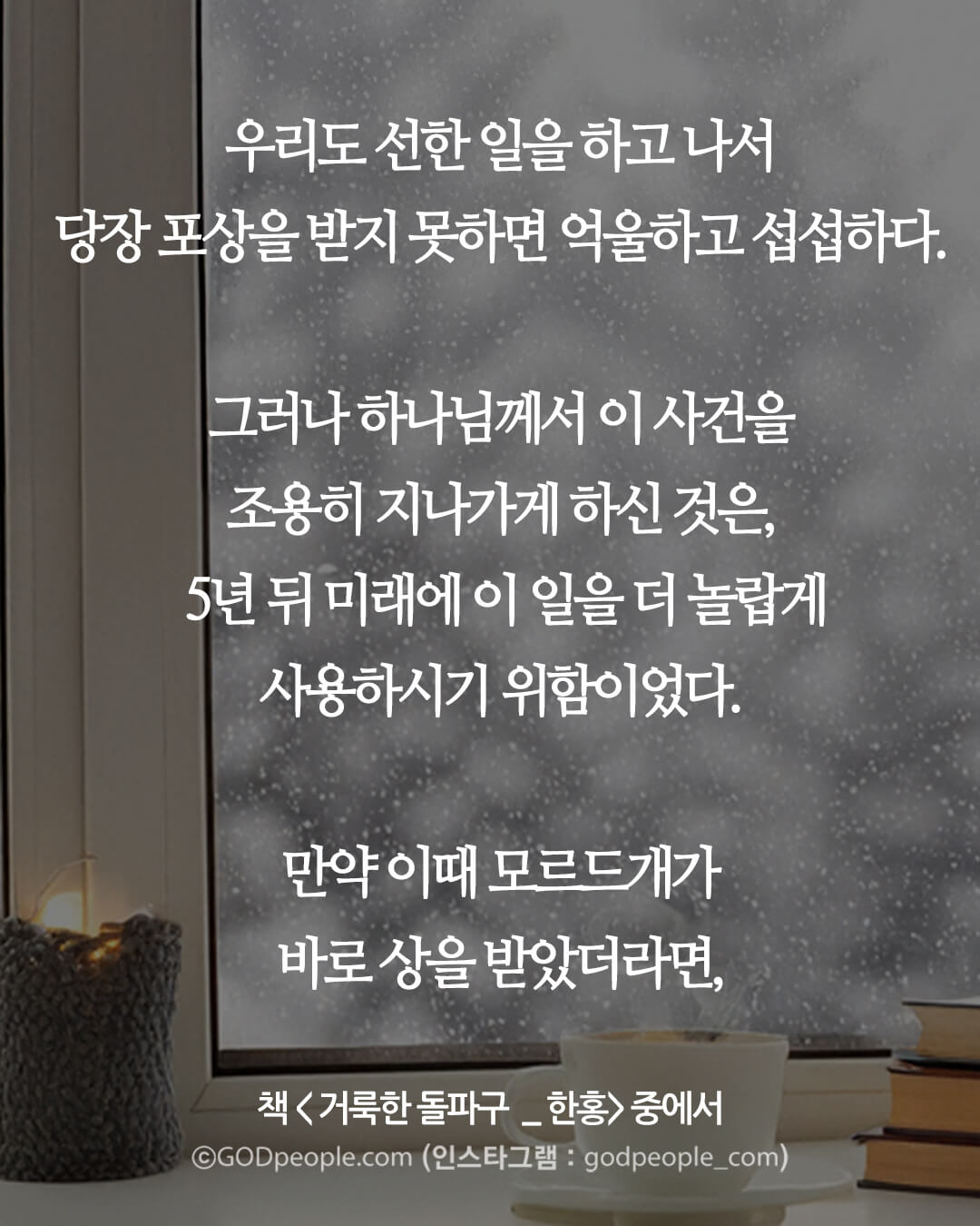 하나님은 빠르지도 느리지도 않게 정확한 타이밍에 역사하신다.