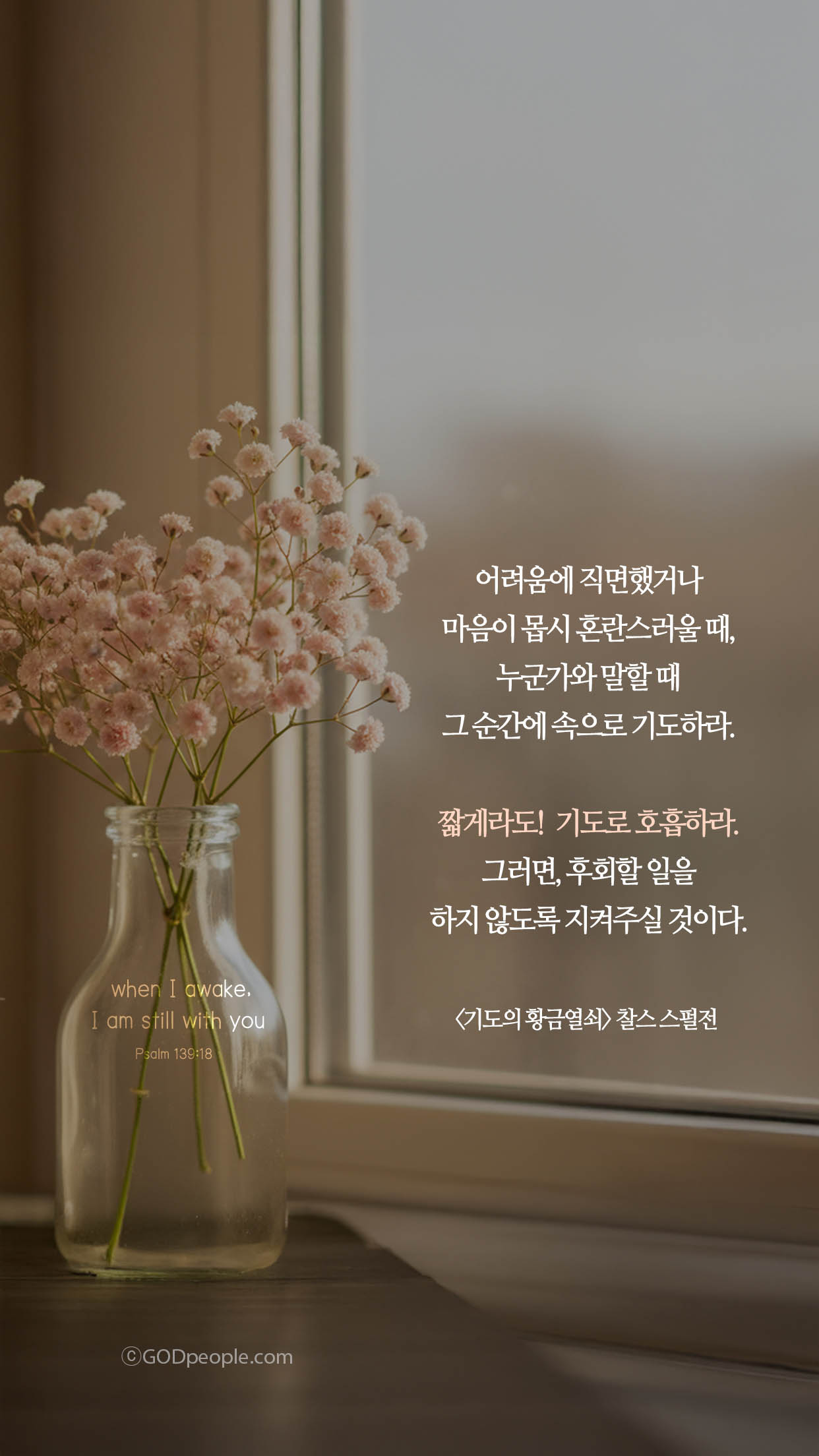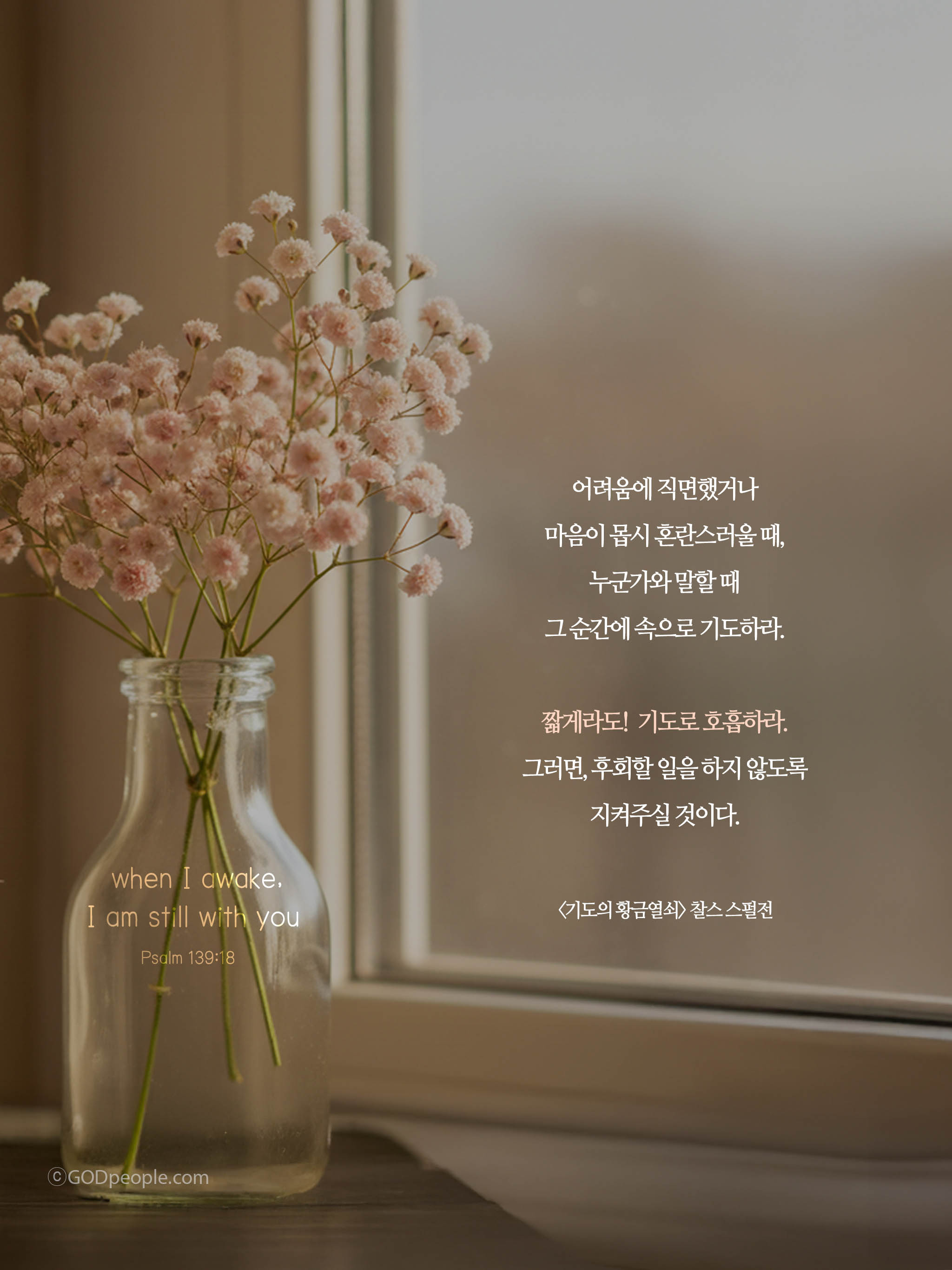 그러나 기도는 짐이 아니라, 힘입니다. 하나님께 기도할 때 충전됩니다.