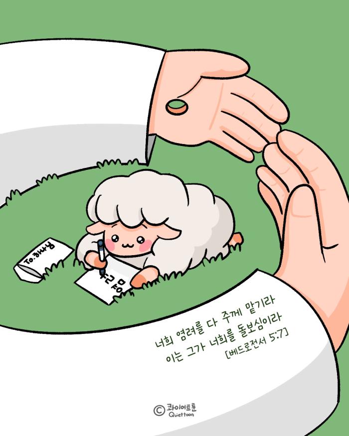 홍기두 작가 작품활동 응원하기!지난 20년간 갓피플 만화는 주보 사용을 무료로 제공해왔습니다. 이제는 작가들에게 작은 정성을 표현하면 어떨까요? 주보 1회 사용시 1,000원의 자발적 결제 후 이용해주세요주보사용 자발적 결제1,000원작가에게 커피 한잔선물하기좋아요아멘개척교회 돕기 2026-01-31 · 668 · 2 · 7그림묵상빌립보서콰이어트툰[주의] 계좌로 도움 요청글 발견시눌러 사용자차단을 눌러주세요!댓글 0입력댓글먼저최근순등록콰이어트툰_홍기두더보기날로 새로워지도다다 주께 맡기라나의 힘이신 여호와