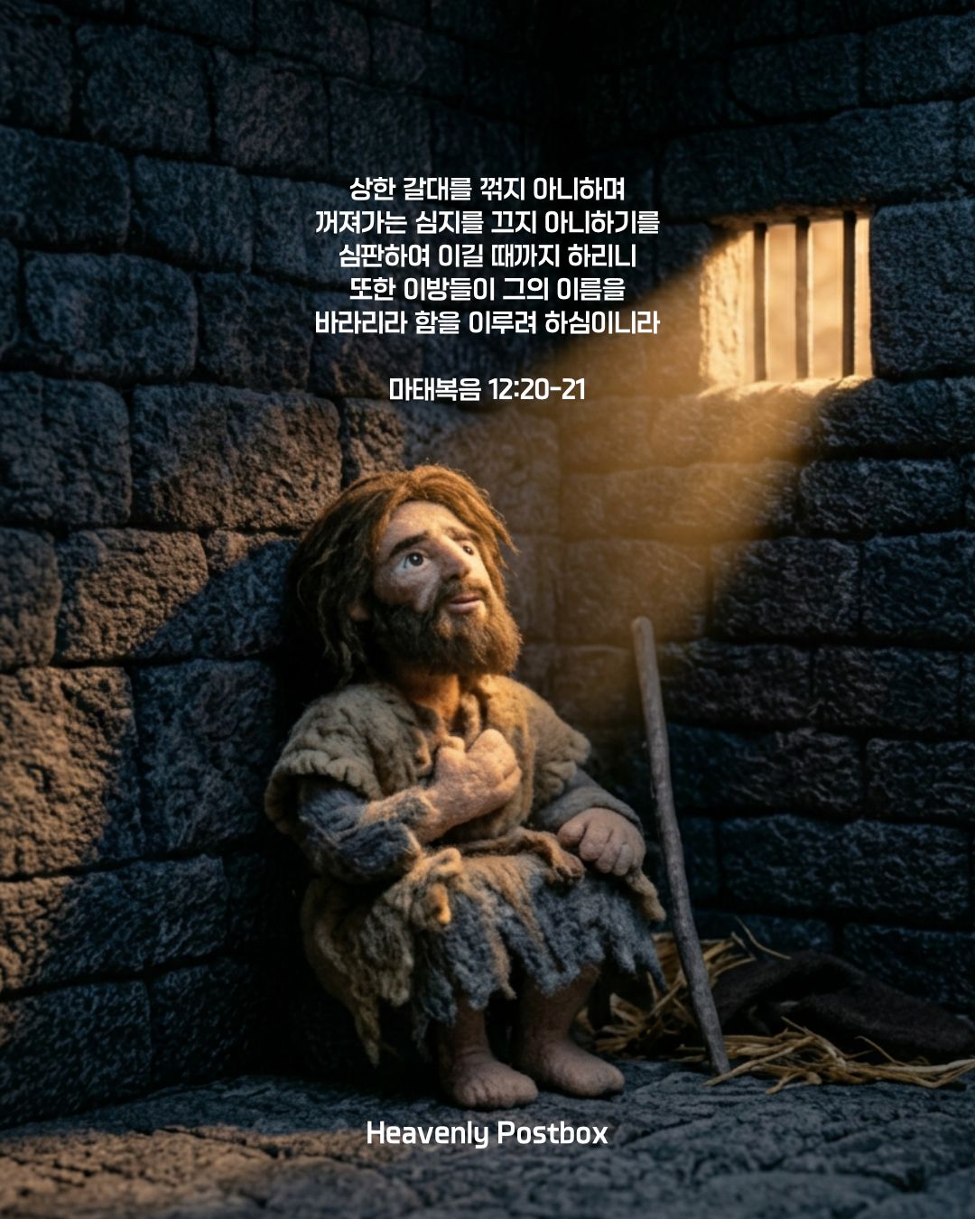 시간이 흘러, 요한의 삶에 큰 위기가 찾아옵니다. 예수님을 향하여 "보라, 세상 죄를 지고 가는 하나님의 어린 양이로다!"(요1:29) 담대히 외쳤던 그가... "오신다던 그 이가 당신이 맞습니까?"(눅7:19)라고 되물으며... 한없이 흔들리기 시작한 것입니다. 아마도 요한은 강력한 권세를 가진 만왕의 왕, 심판주로서의 메시아를 소망하며... 예수님의 행보를 예의주시하면서 기다렸을 것입니다. 하지만, 아무리 기다려도 갈릴리 촌구석의 이름없는 평범한 어부들과 어울리시며... 너무나 존재감없이 조용하게 지내시는 예수님의 모습에 심히 혼란스럽고 낙심이 되었던 것 같습니다. 이에 예수님은 "맹인이 보고, 못 걷는 자가 걸으며, 죽은 자가 살아나고, 가난한 자에게 복음이 전해지고 있다"는 소식을 요한에게 전하시면서... '공의의 심판'이 도착하기 전에 '조건없는 사랑'이 먼저 도착하였다는 사실을 분명히 하십니다.